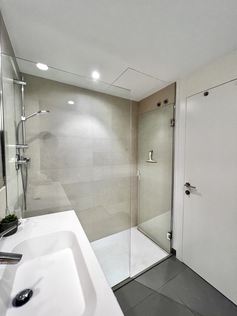 Het nieuw geïnstalleerde automatische zonnescherm biedt bescherming tegen de zon en biedt privacy voor zowel het terras als het appartement zelf.