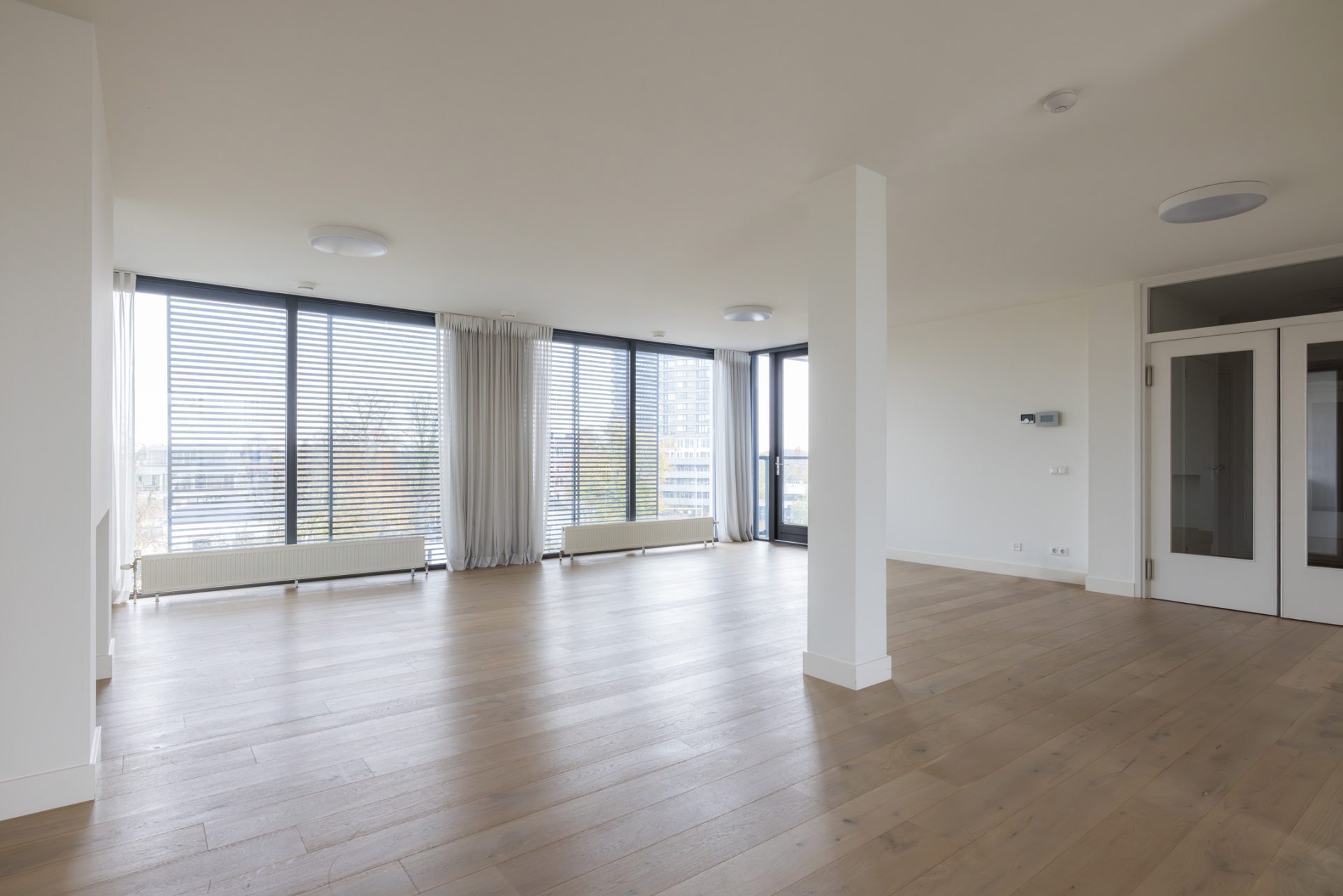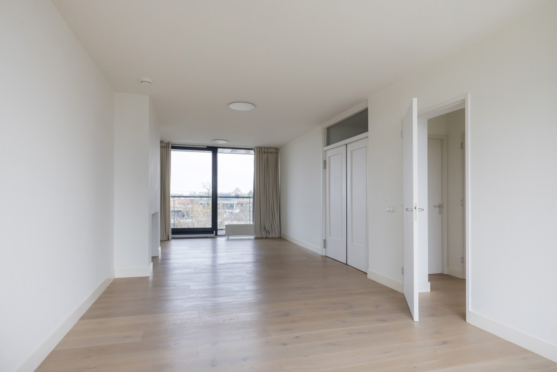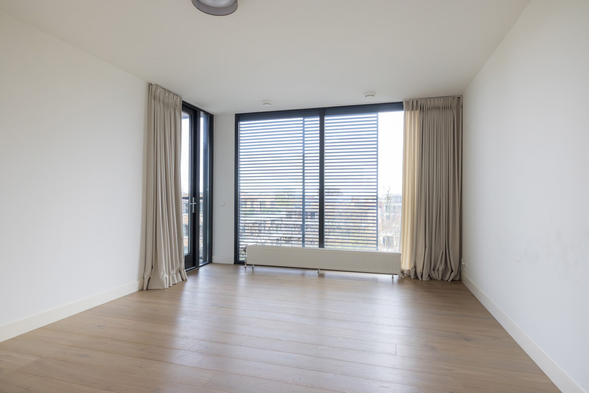 Ook hier bepalen een eikenhouten vloer, mooie binnendeuren en stucwerk de sfeer. Beide slaapkamers grenzen aan het derde balkon, waardoor er aan buitenruimte geen gebrek is.