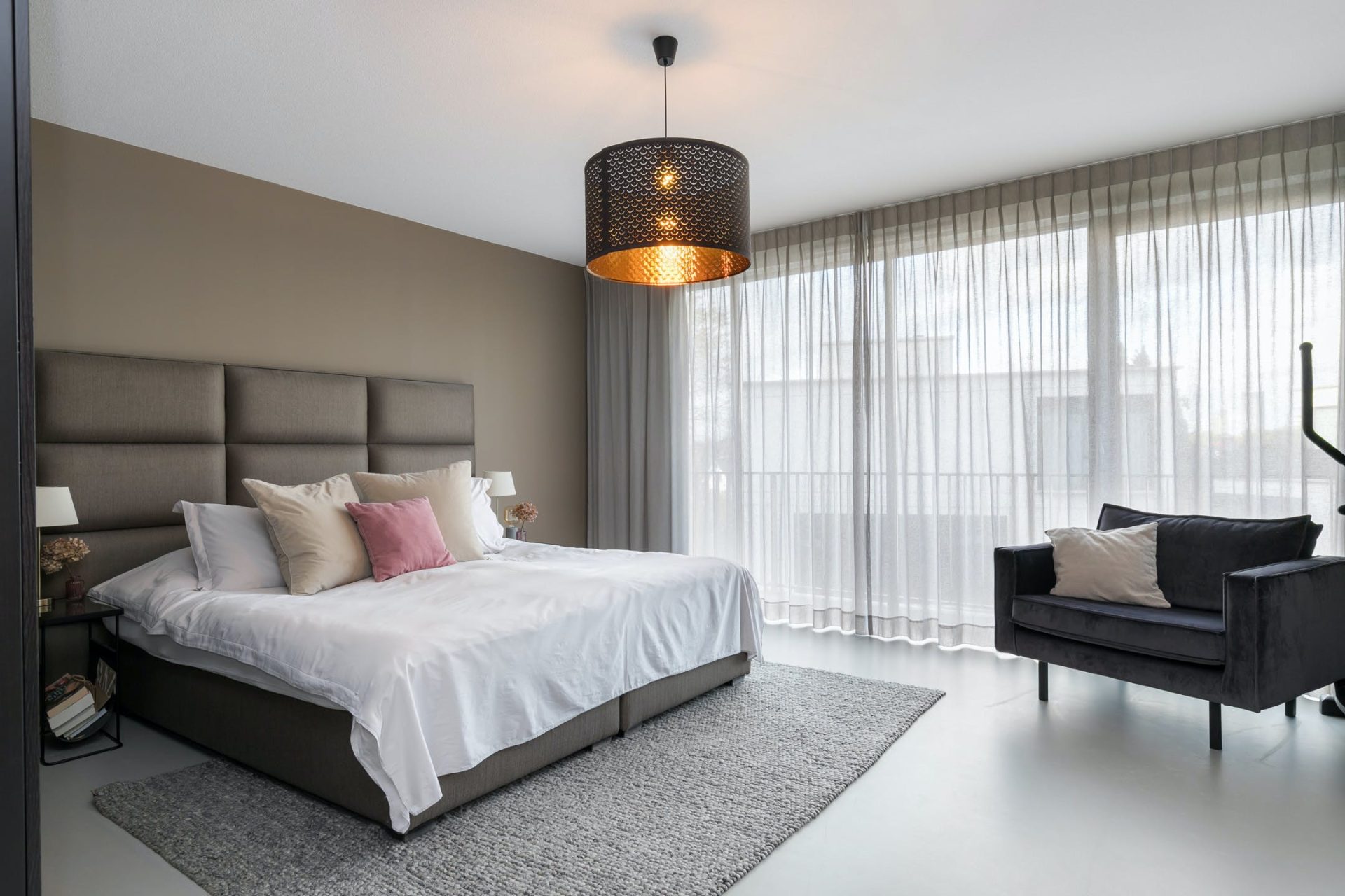 In de huidige indeling heeft het appartement twee slaapkamers. Met het plaatsen van een muur en een deur is de eetkamer te transformeren in een derde slaapkamer. De master bedroom heeft een op maat gemaakte inloopkast en een eigen badkamer met een ligbad, inloopdouche, toilet en een dubbel wastafelmeubel. De tweede slaapkamer is ingericht als stijlvolle kinderkamer. Beide slaapkamers grenzen aan het tweede balkon.