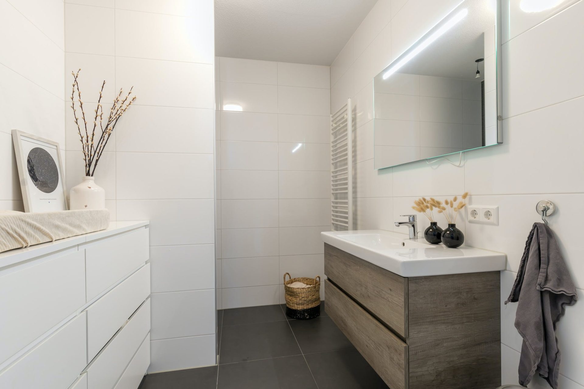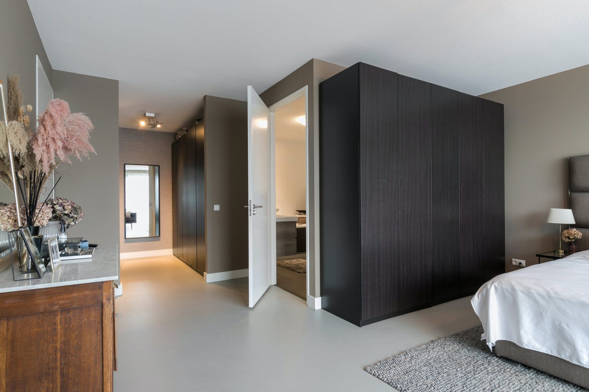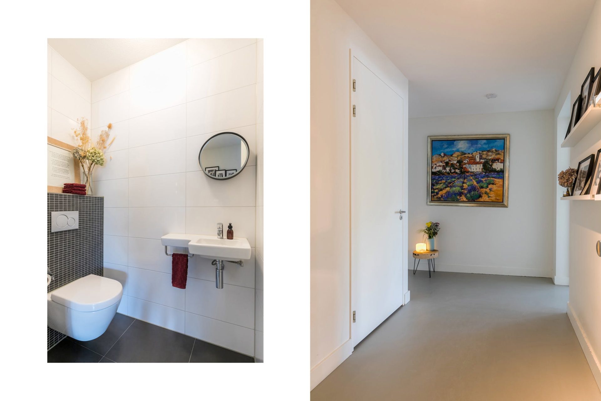 Vanaf het moment dat je in de hal staat, word je omringd door luxe en sfeer. Het is erg prettig dat de hal heel ruim is, waardoor kunst genoeg ruimte heeft en je de ruimte kunt inrichten met mooie accessoires.