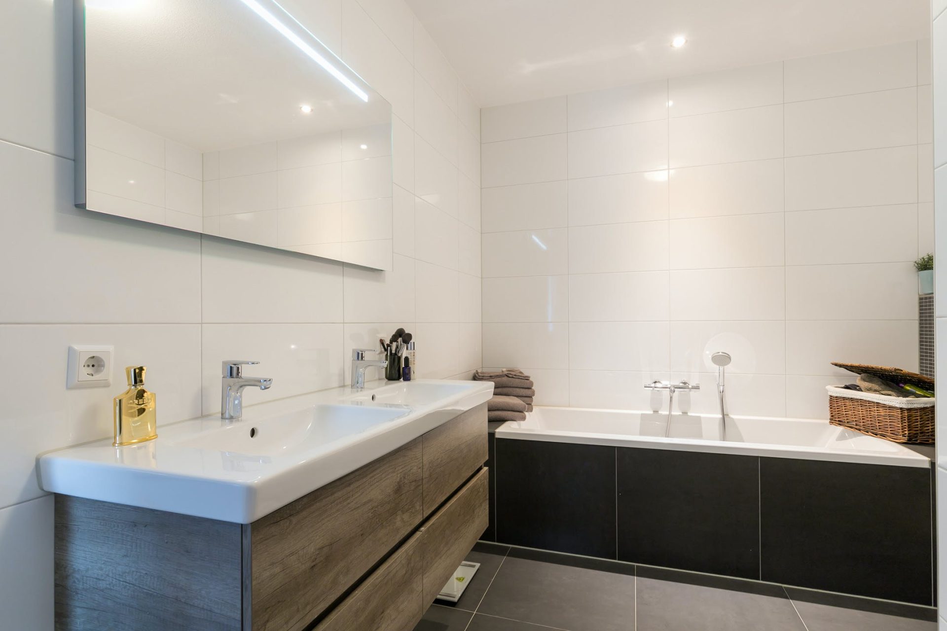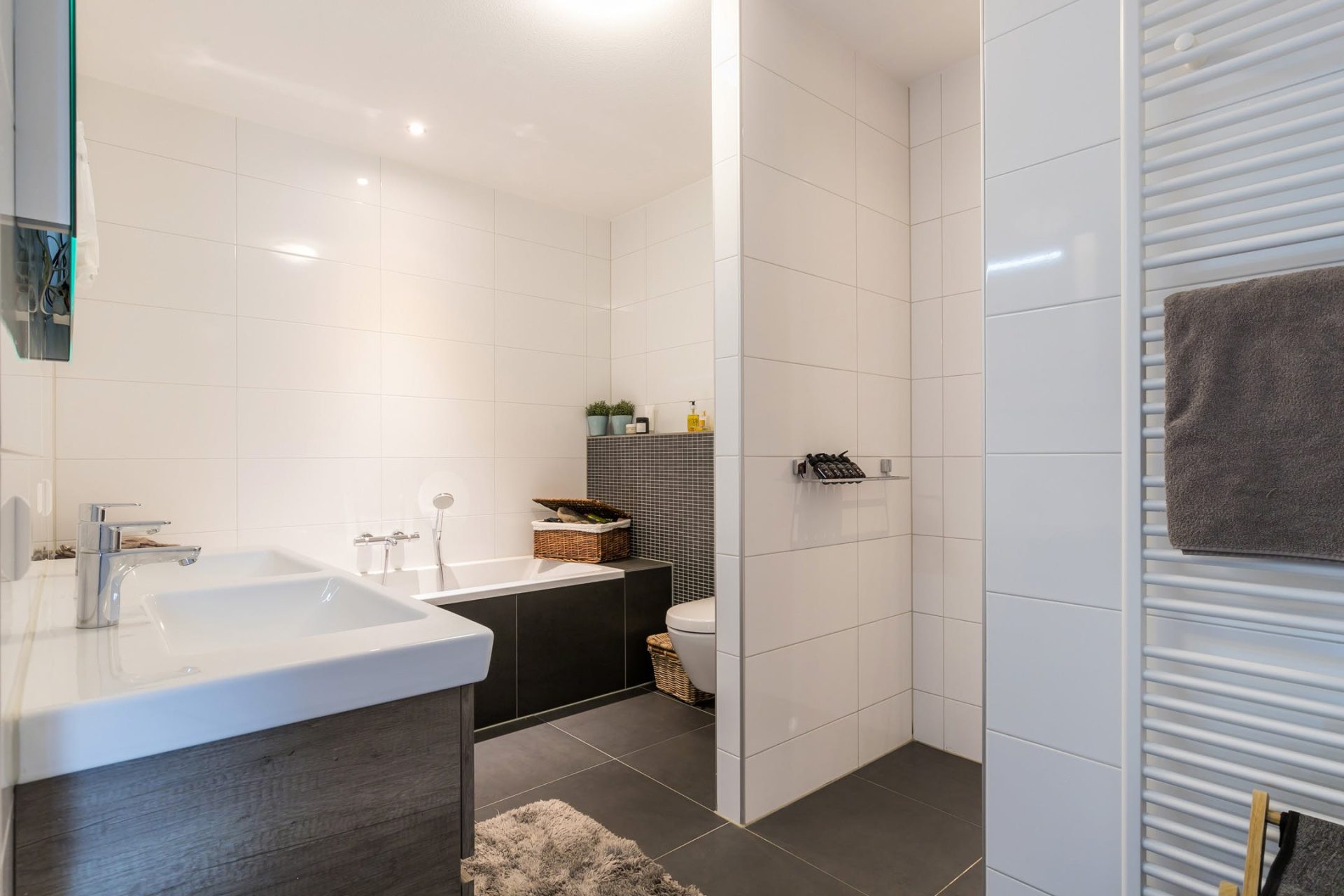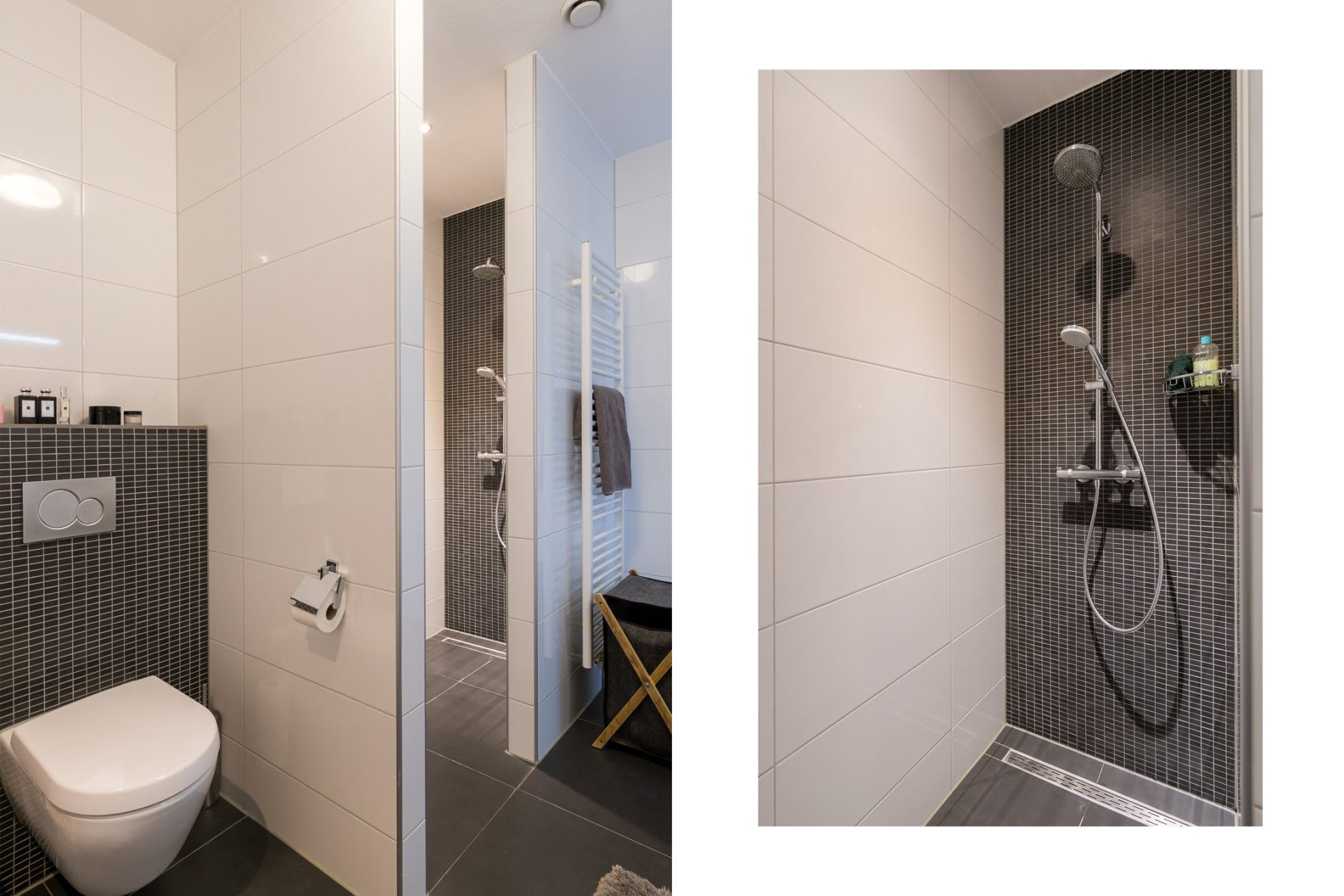 Verder zijn vanuit de hal een tweede badkamer en het gastentoilet met fonteintje te bereiken. Deze badkamer heeft een inloopdouche en een wastafel. Perfect voor een gezin en voor het ontvangen van familie of vrienden die blijven overnachten.