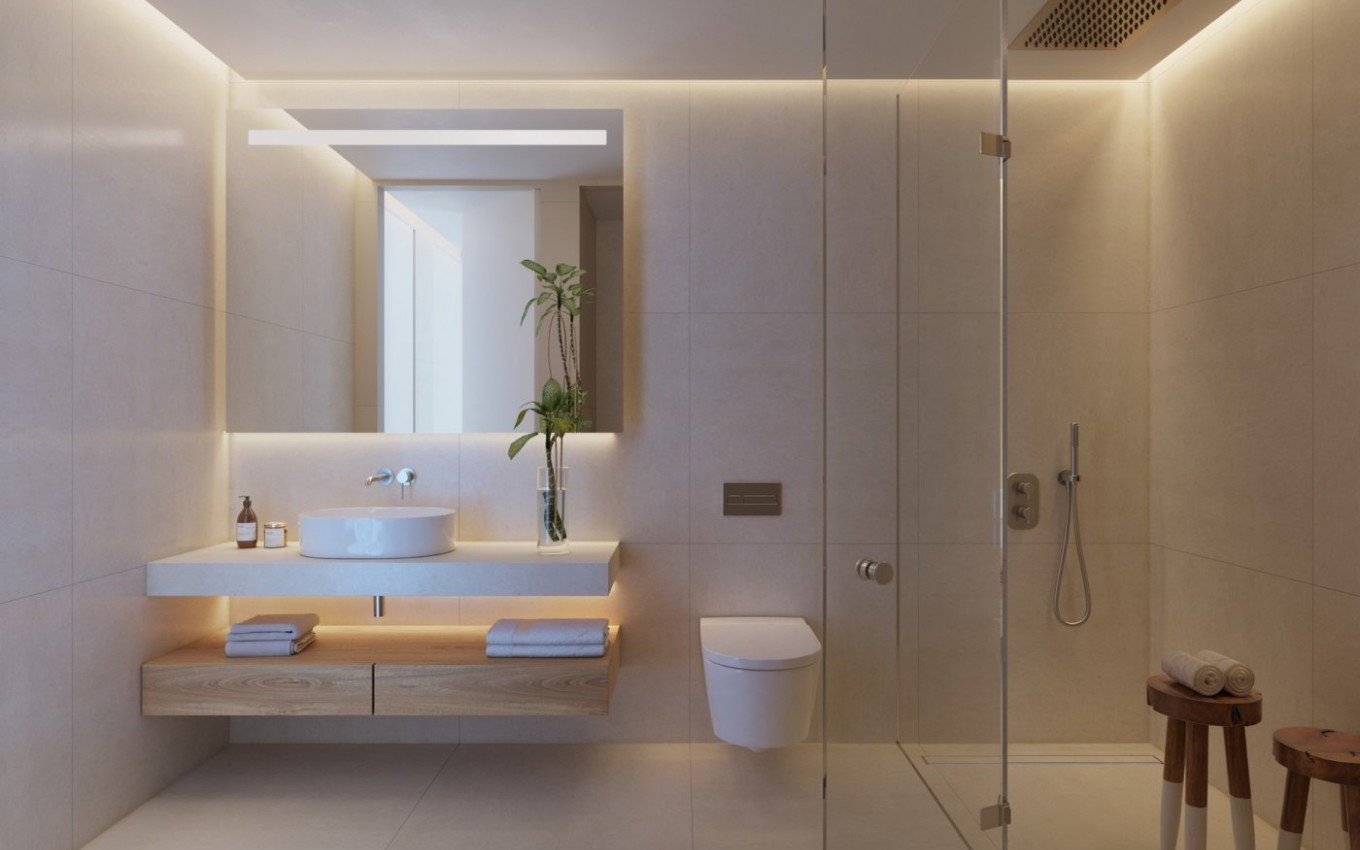 De appartementen bieden 3 slaapkamers en 2 badkamers, een open keuken met zitkamer, inbouwkasten en direct uitzicht op het stadsplein, het strand en de zee. De penthouse appartementen hebben ook directe toegang tot hun eigen privé dakterras van 80 m2, met panoramisch uitzicht.