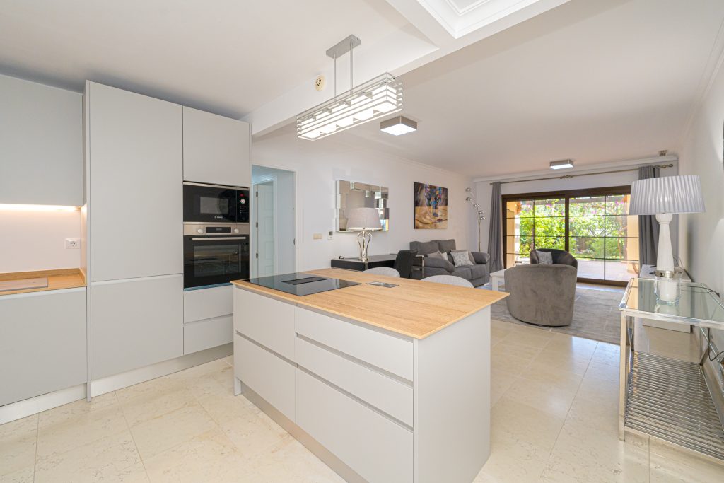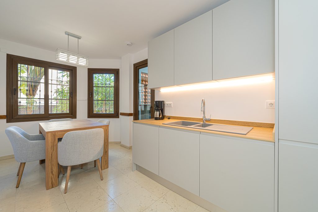 Dit stijlvolle appartement is gelegen in het residentiële wooncomplex naast het gelijknamige 5-sterren hotel Villa Gadea. Gelegen aan het bekende strand La Olla met een verscheidenheid aan restaurants op het strand. Vanaf het appartement is het nog geen 5 minuten lopen naar het strand en het hotel.