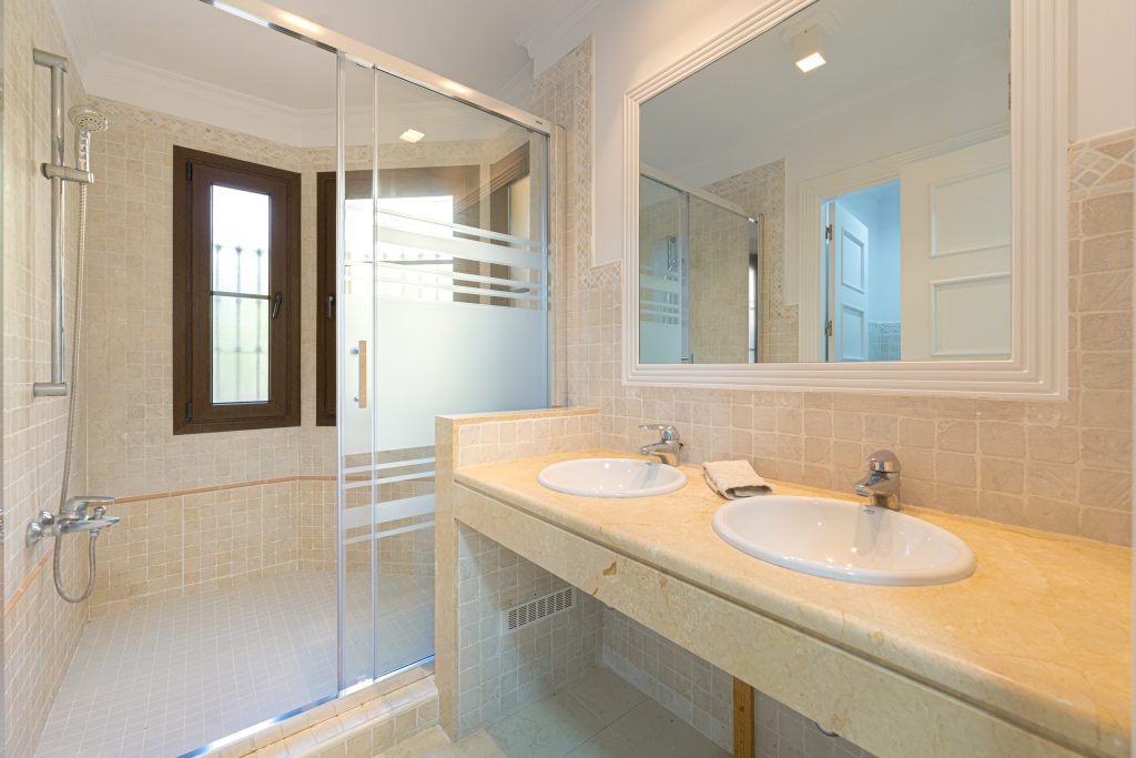 Drie tweepersoonsslaapkamers, waaronder de hoofdslaapkamer met een kastenwand en een badkamer met douche. Deze slaapkamer heeft directe toegang tot het terras. De twee andere tweepersoonsslaapkamers delen een badkamer.