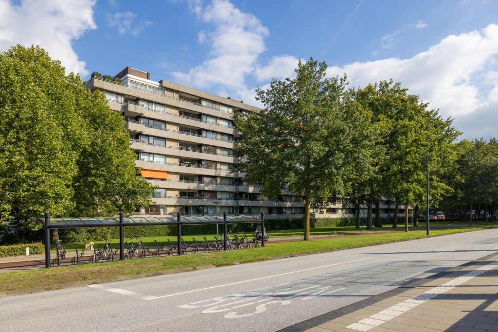 Het goed onderhouden appartementengebouw heeft een representatieve, gezamenlijke entree met een videofoon. Met de lift, of trap, gaat nu naar de 8e en tevens bovenste verdieping. De berging is op de begane grond gesitueerd en de garages zijn gesitueerd op het gezamenlijke buitenterrein.