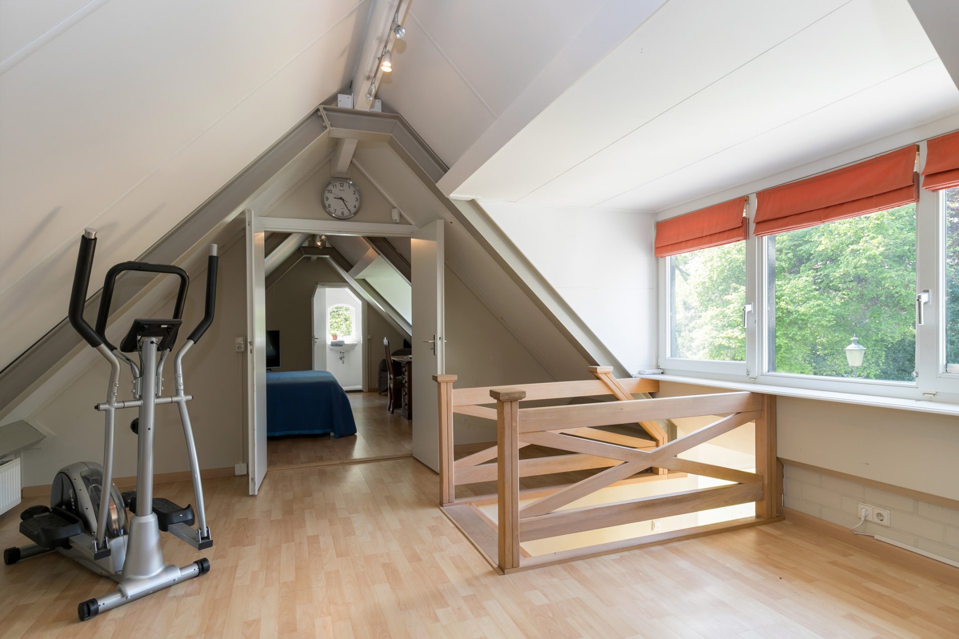 Het luik op de overloop geeft toegang tot de bergzolder met vlizotrap. Daarnaast is via een extra deur in een van de slaapkamers achter nog een grote berging.