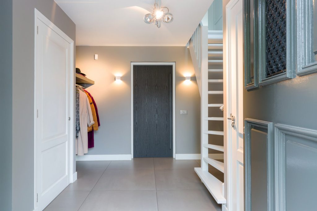 Open de prachtige voordeur en stap de hal in; een ruimte met een ongekende charme. Links in de hal is de garderobe en aan de rechterzijde zijn de mooie trapopgang en het luxe gastentoilet. De tegelvloer met vloerverwarming, gestucte wanden en de rustige kleuren zorgen voor een aangename sfeer.