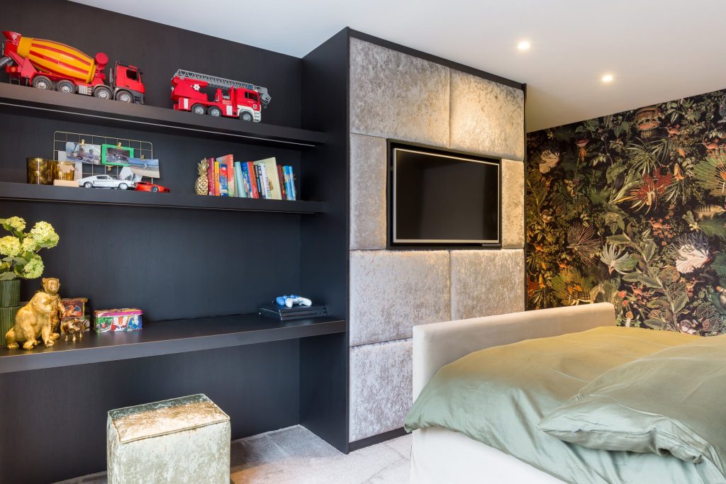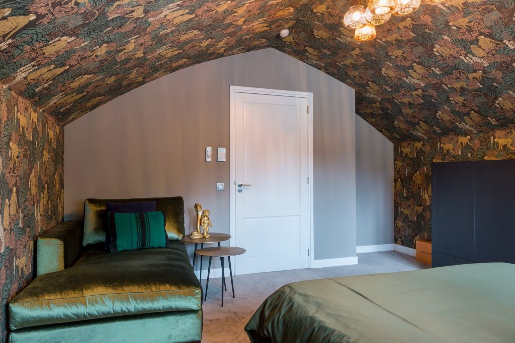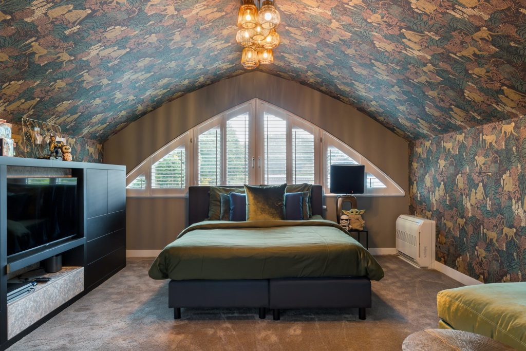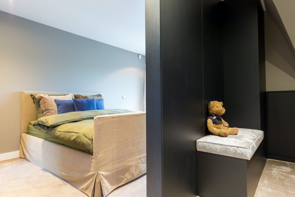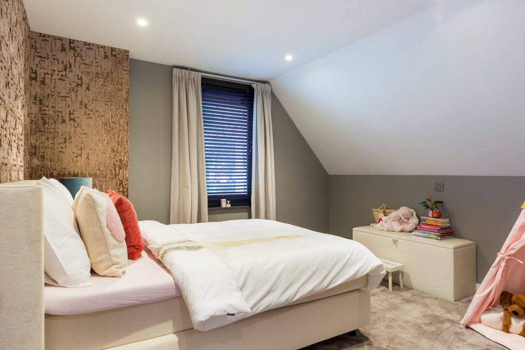 Naast de masterbedroom is een ruime tweepersoonskamer met een inloopkast en aan de voorzijde is een prachtige slaapkamer, ingericht als luxe kinderkamer.