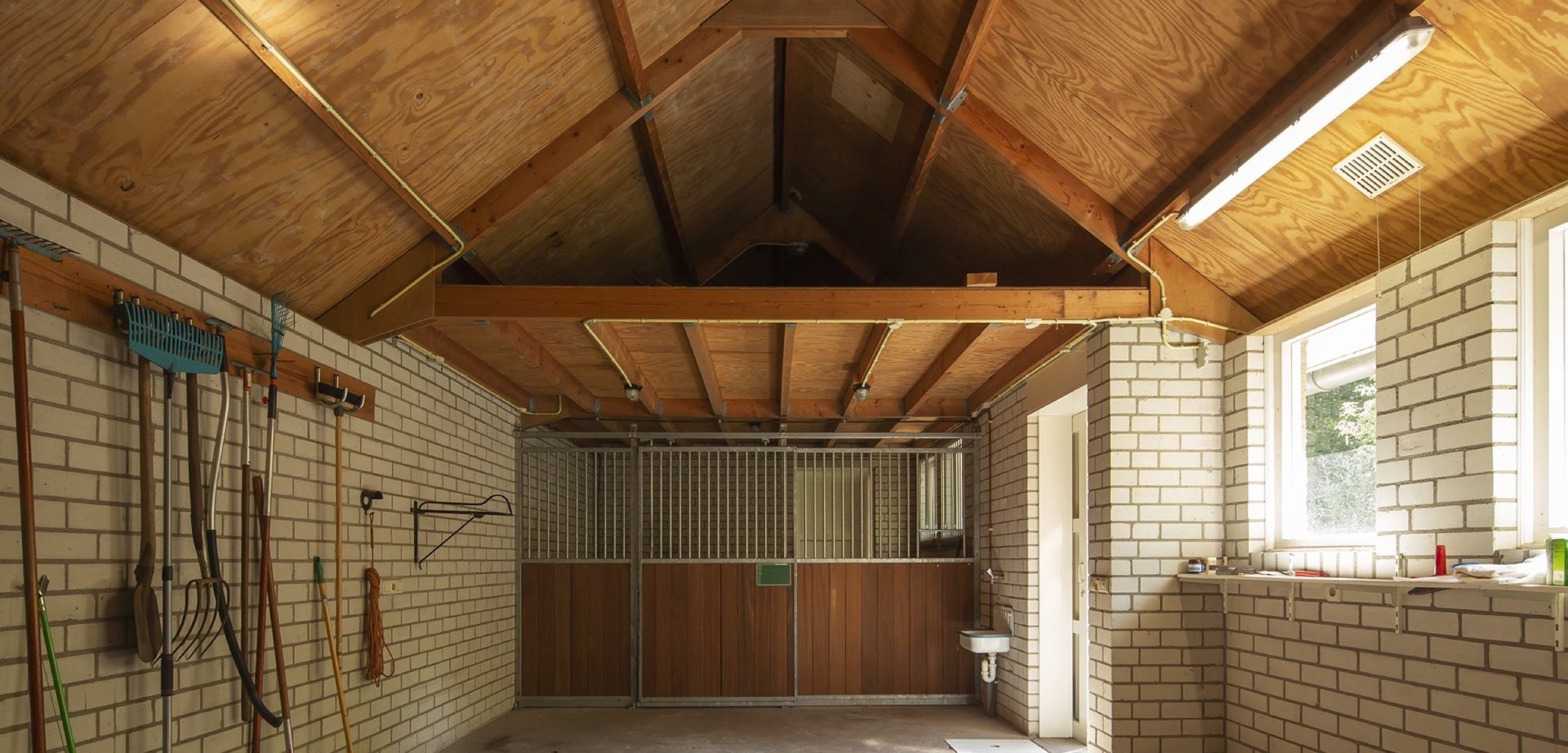 Niet alleen op de oprit of onder de dubbele carport is plek voor meerdere auto’s. Op het perceel staat een vrijstaand meer dan 10 meter diepe, in spouw gebouwde garage/berging met een frontbreedte van 5,20 meter en een overdekt terras. Meerdere ramen en twee toegangsdeuren zorgen voor een goede toegankelijkheid. In de garage bevindt zich nog een paardenbox, misschien is het houden van een pony nog een langgekoesterde wens die hier eindelijk werkelijkheid kan worden.