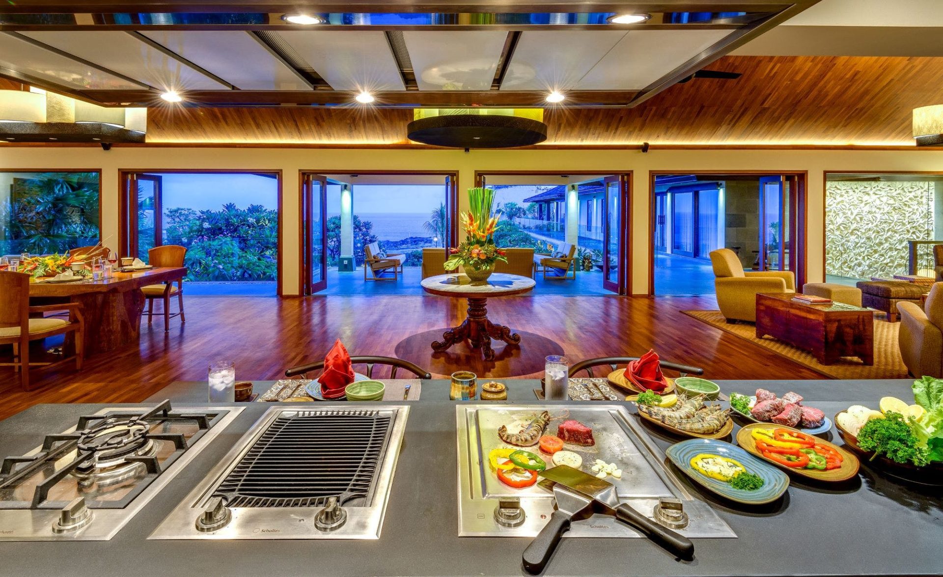 Prachtige tuinen en zwembad terrassen bieden vele locaties om te ontspannen of te spelen, terwijl er verschillende gebieden zijn om te loungen en te dineren, waaronder een gemeenschappelijke zwembad woonkamer en open keuken en veel prive-ruimtes om van te genieten.