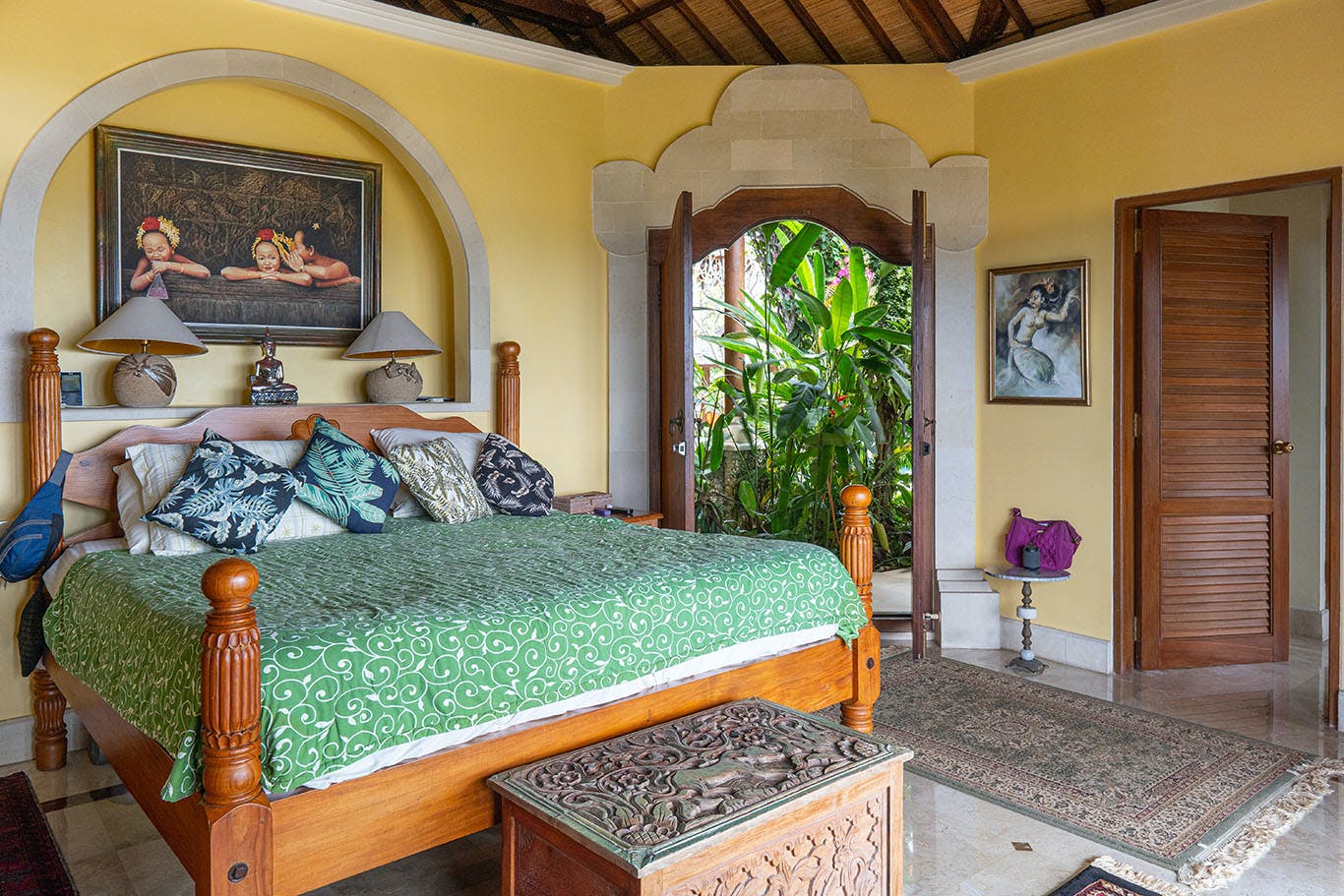 Het pand is verder uitgerust met een royaal zwembad, een fraaie aangelegde tuin met vele stijldetails en een buitenzitgedeelte met adembenemende zichten op de omliggende bergen, de Zuidkust van Bali en Nusa Penida.