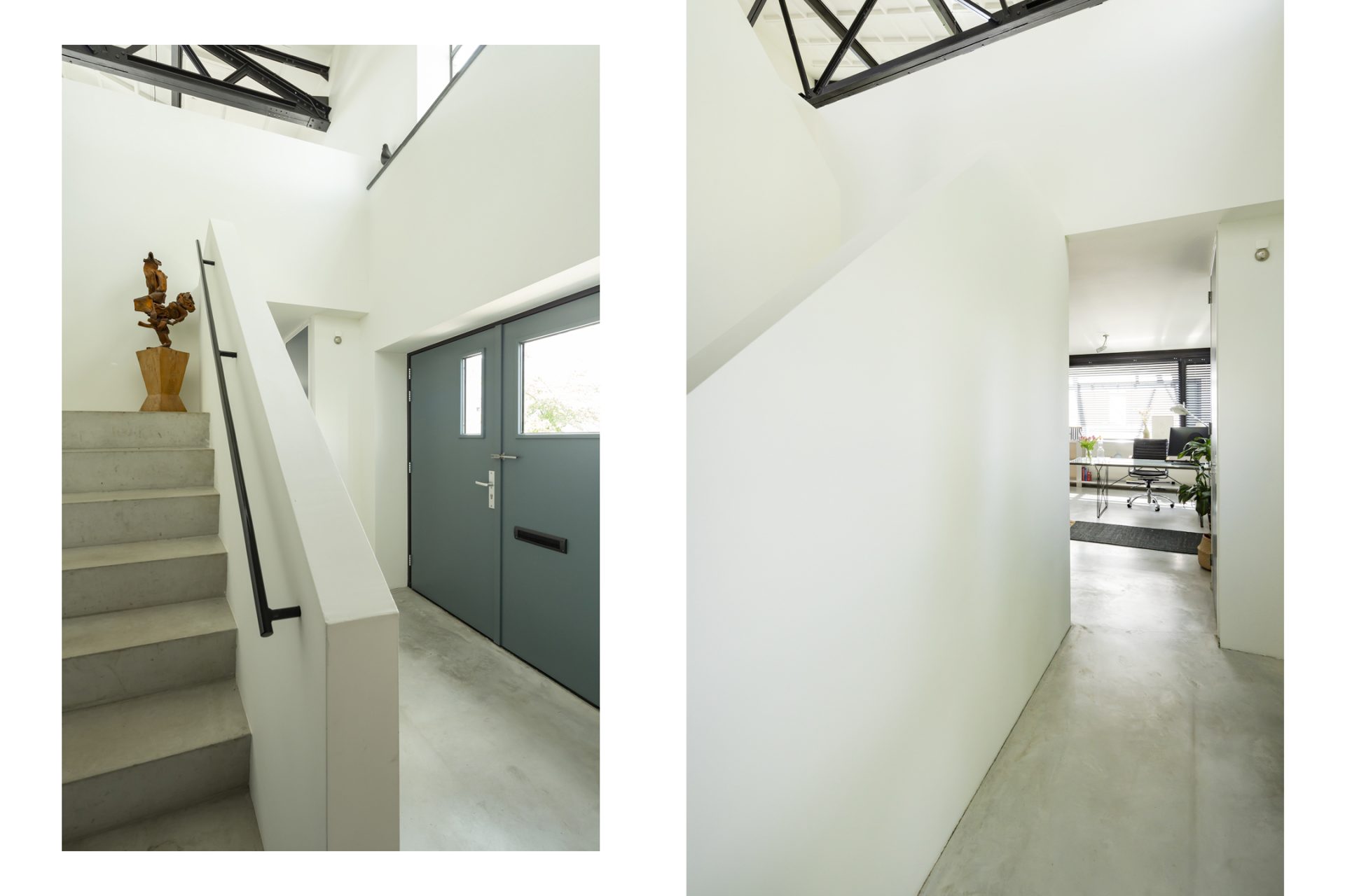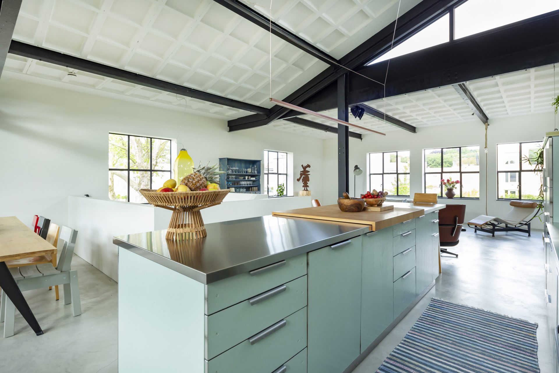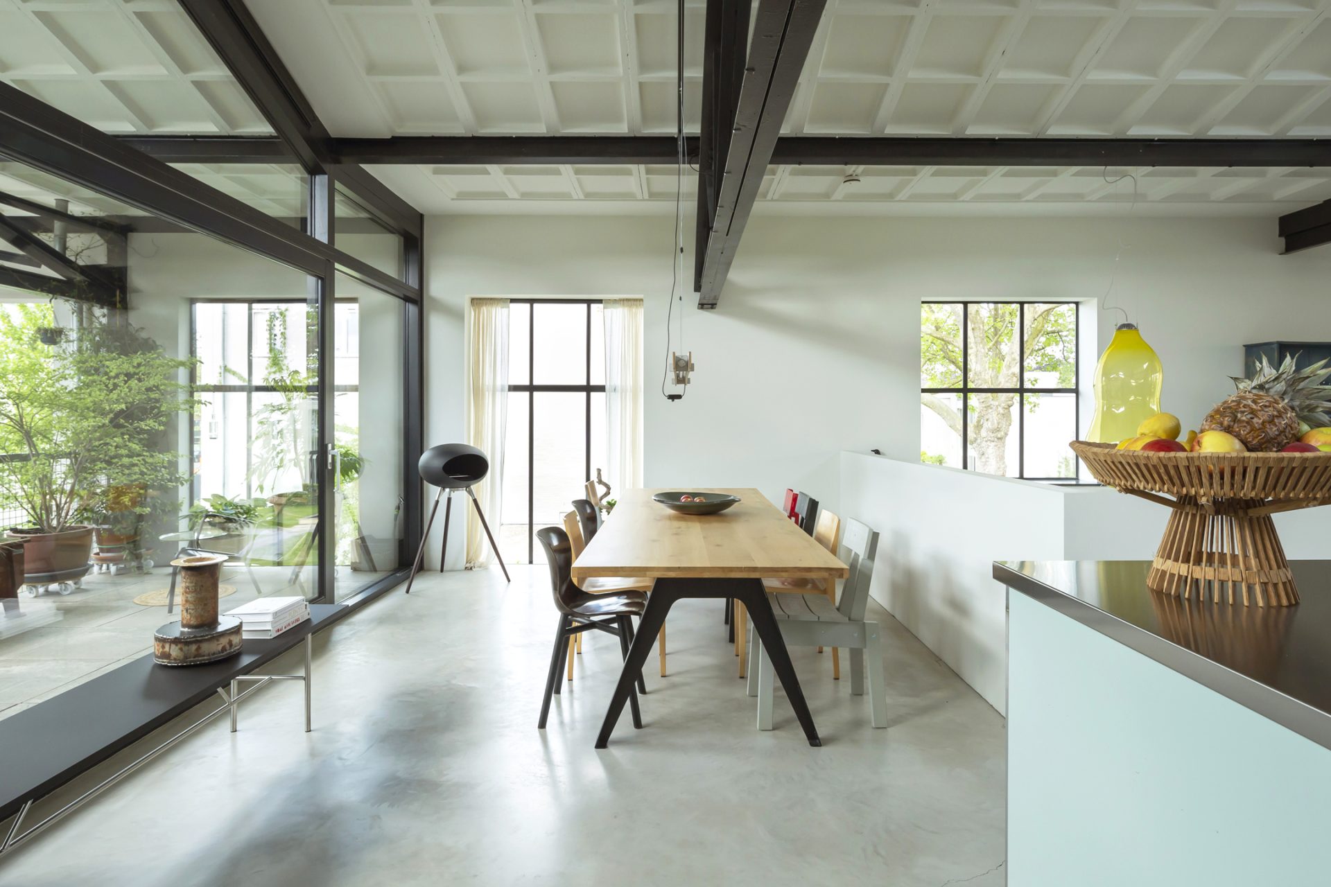 De loftwoning is verdeeld over drie verdiepingen; een souterrain, de slaapverdieping op de begane grond en de bovenverdieping is de spectaculaire woonetage.