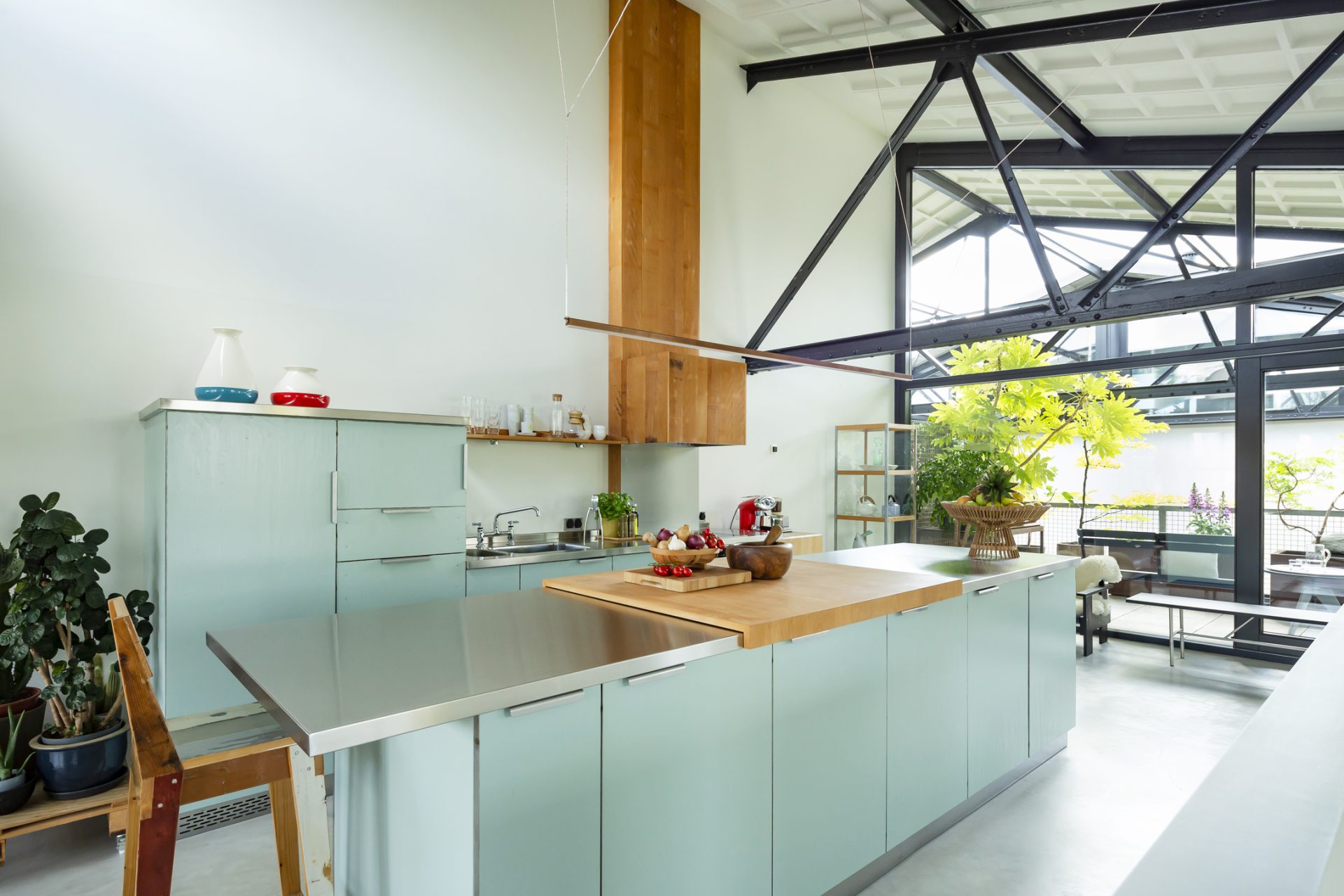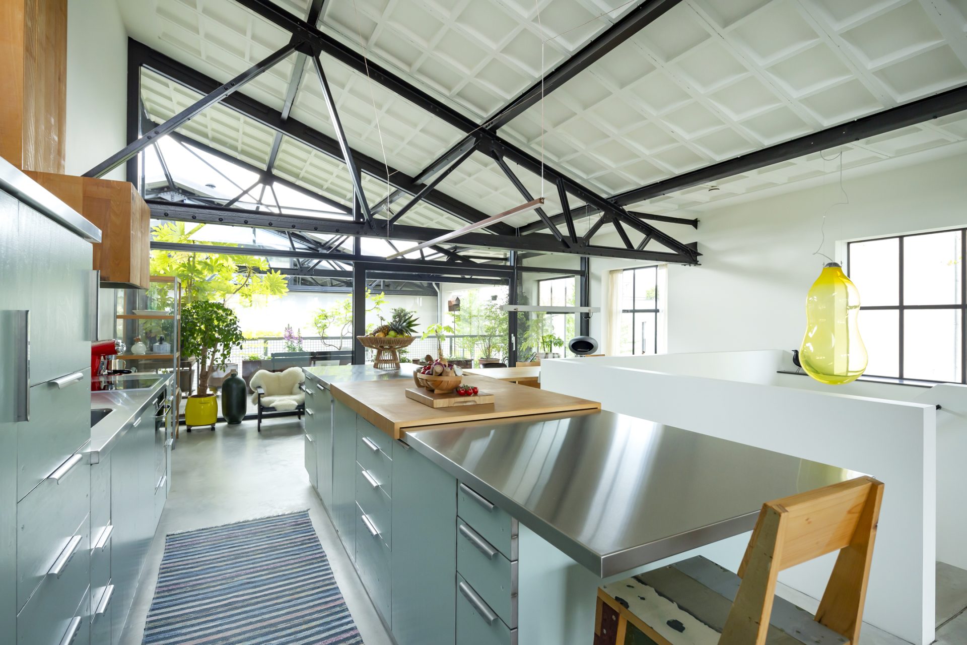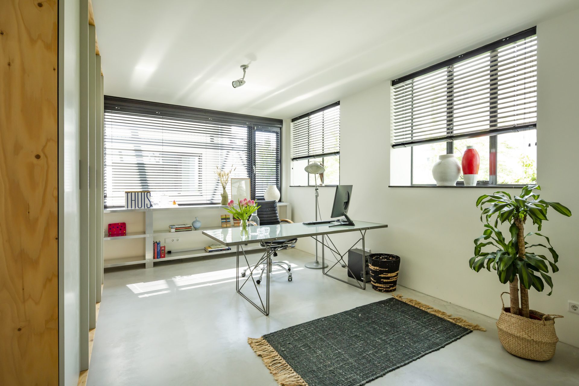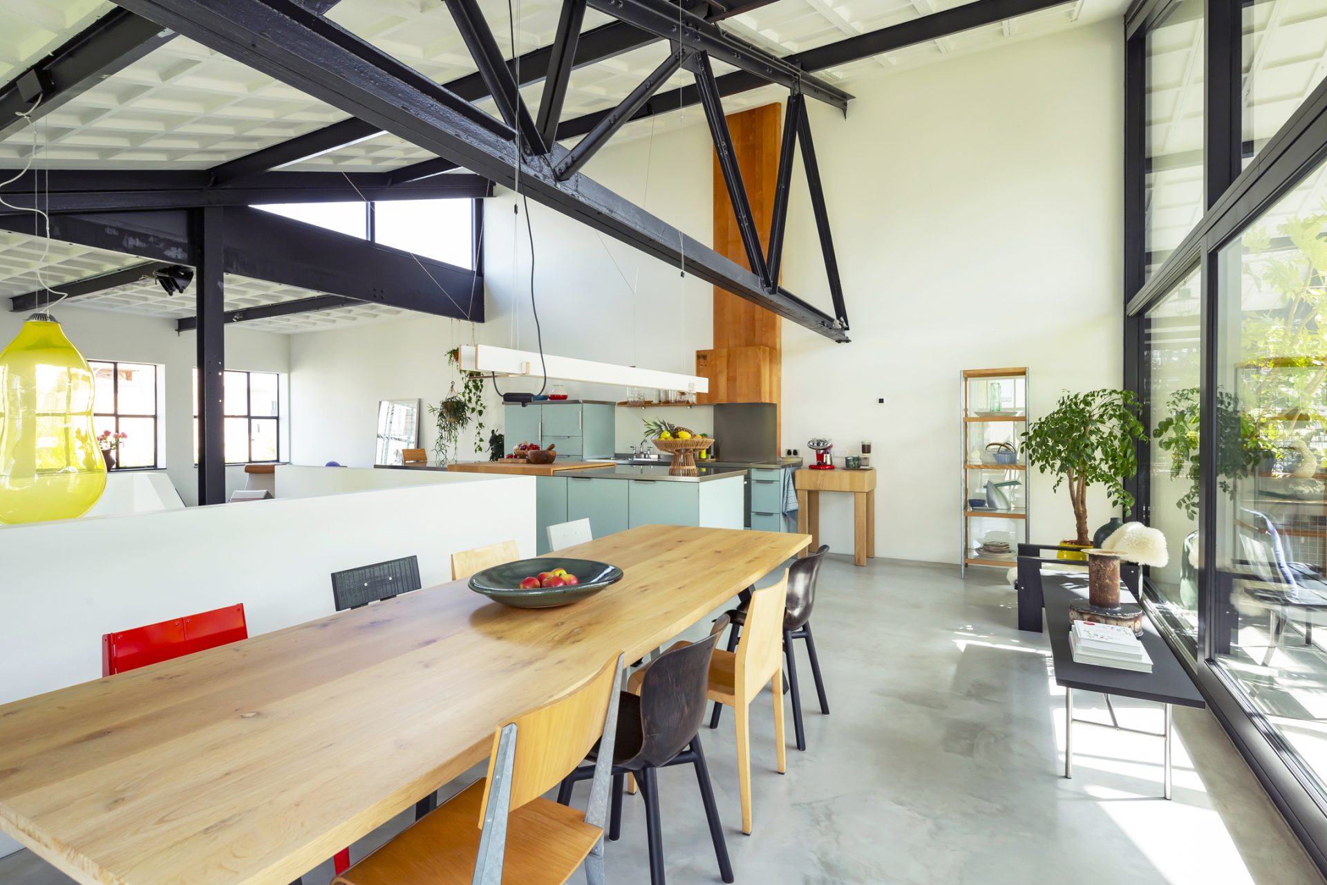 De loftwoning is verdeeld over drie verdiepingen; een souterrain, de slaapverdieping op de begane grond en de bovenverdieping is de spectaculaire woonetage.