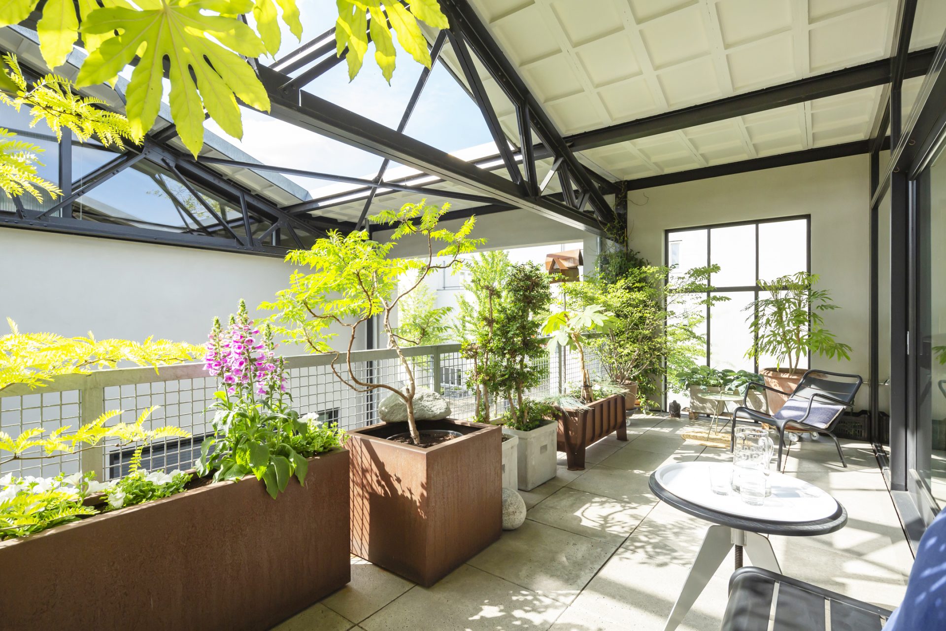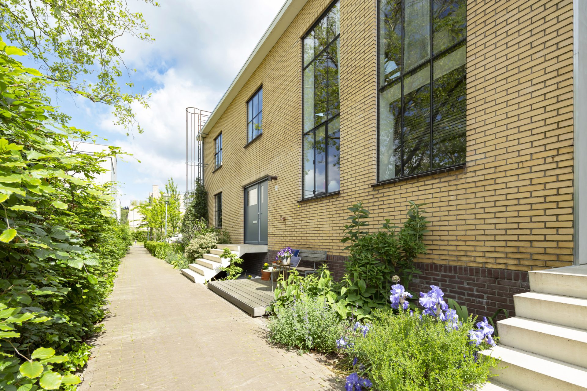 Het dakterras is een prachtige buitenruimte met een oppervlakte van bijna 18 m². De ruimte heeft de beleving van een tuinkamer en biedt meer dan genoeg ruimte om met meerdere personen buiten te zitten. Op de begane grond, bij de entree, is een tweede terras gemaakt.