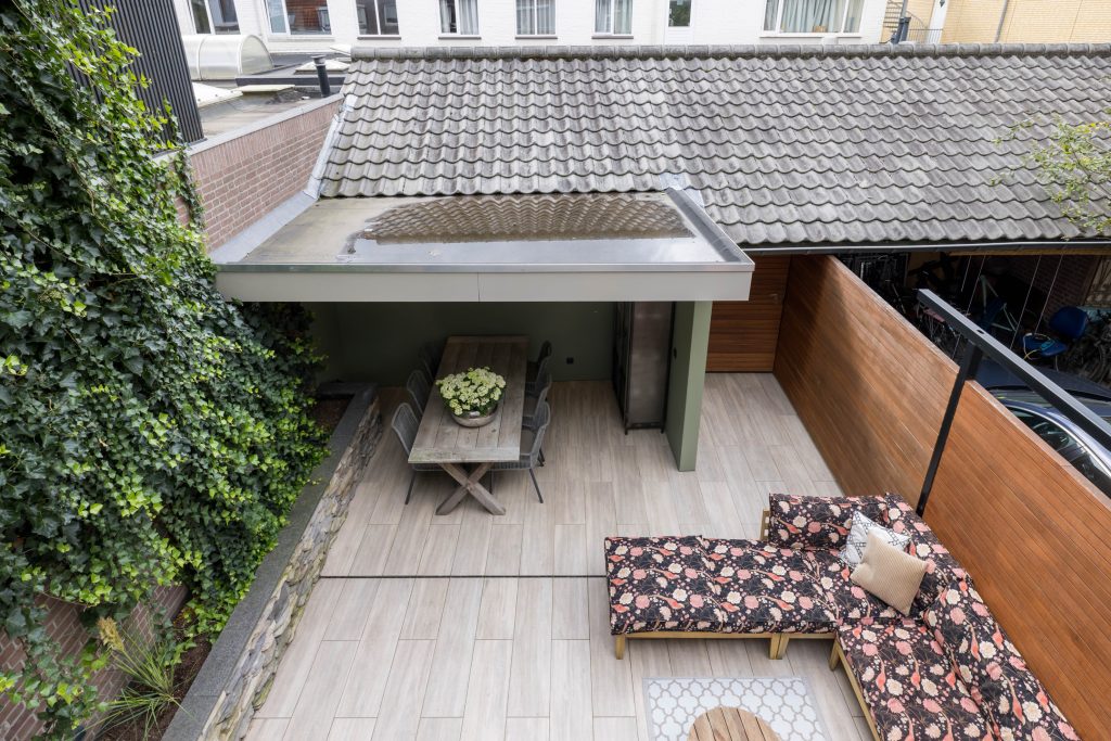 Zowel de loungetuin als het dakterras zijn gesitueerd op het zonnige zuidwesten. Het dakterras met houten vloerafwerking heeft een oppervlakte van iets meer dan 20 m² en de loungetuin, inclusief overdekt terras en berging, is bijna 10 meter diep. Hier wordt het volop genieten van het goede leven; samen of met familie en vrienden…