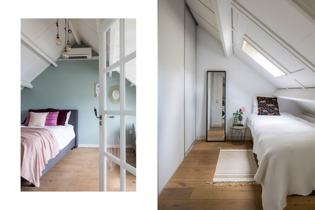 Op de bovenste verdieping zijn nog twee slaapkamers en een wasruimte. De kamer boven de poort is een charmante eenpersoonskamer met een grote kastenwand en de tweede, tevens grootst kamer heeft een dakkapel aan de achterzijde. Er ligt, net als op de eerste verdieping, een eikenhouten vloer.