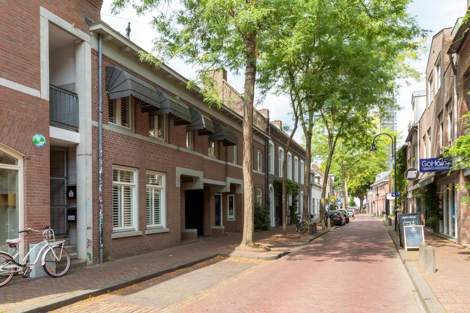 De Bergen in het hart van Eindhoven is een unieke plek, er wonen is een fantastische beleving. Tussen de Kleine Berg en Grote Berg staat deze prachtige, geheel verbouwde stadswoning waar stijl, luxe en sfeer volop aanwezig zijn. Het dakterras en de loungetuin met overdekt terras bieden volop ruimte om buiten te zitten. De poort met de achtergelegen parkeergelegenheid voor fietsen en andere voertuigen wordt gedeeld met de buren. Daarnaast heeft deze woning een eigen berging, die tevens de afbakening vormt met de achtergelegen bebouwing.