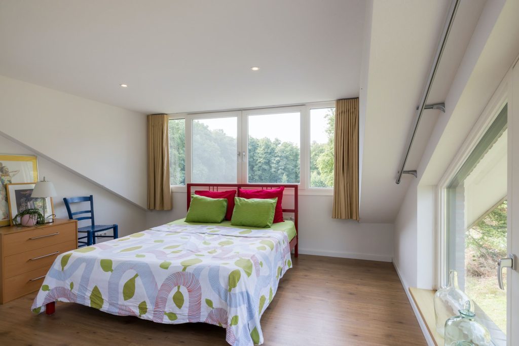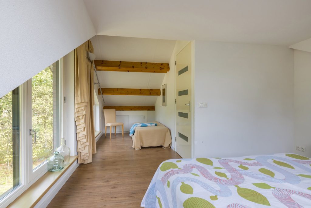 Wakker worden met het allermooiste uitzicht. Op de bovenverdieping liggen twee zeer ruime slaapkamers met grote dakkapellen en ramen aan alle zijden. De grootste slaapkamer is thans ingericht als een 5-persoonskamer maar is eenvoudig op te delen in twee (nog steeds) grote slaapkamers. De tweede kamer is eveneens geschikt voor 2 personen.