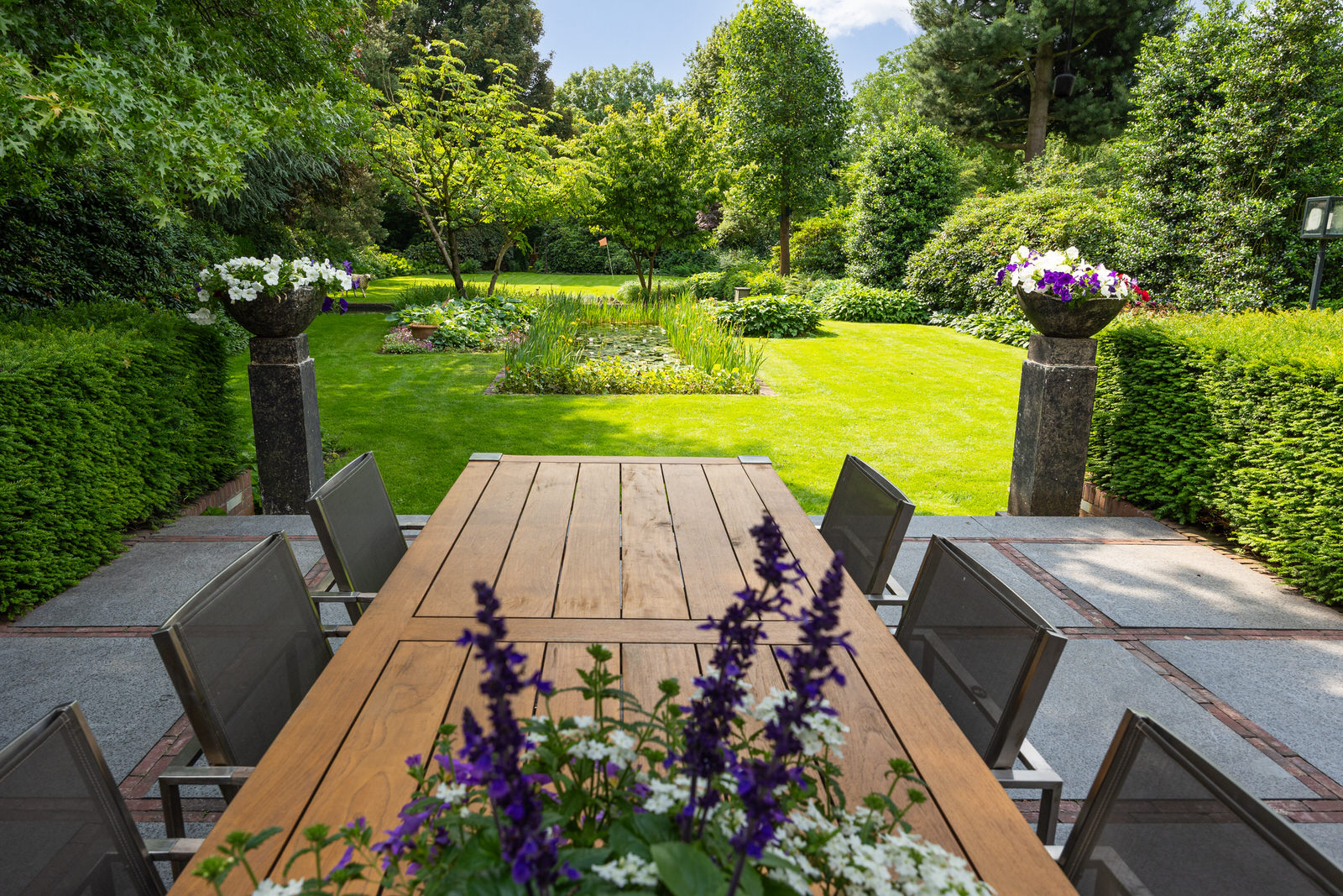Zodra je de tuin betreedt, ervaar je het rustgevende karakter van deze plek. De fraai aangelegde tuin is rijk aan groen, zonneterrassen en lommerrijke hoekjes. Een buitenzwembad/zwemvijver nodigt uit tot ontspannen en biedt verkoeling op zomerse dagen. Kinderen hebben hier de ruimte om vrij te spelen, terwijl volwassenen genieten van het buitenleven in alle rust en privacy.