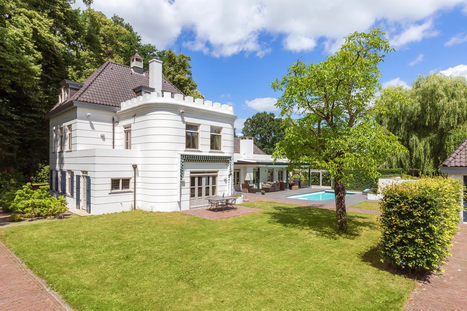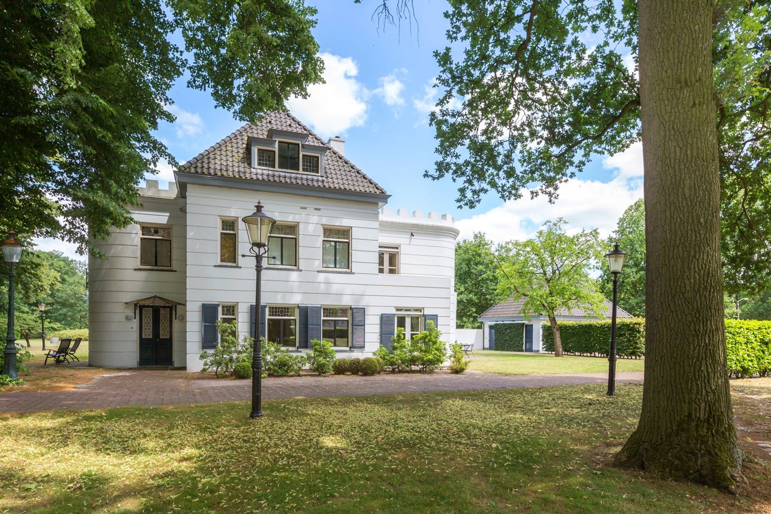 Huize Venrode is schilderachtig mooi, uniek in Nederland en spreekt direct tot de verbeelding. Omringd door een privépark van 8 hectare is het een voorrecht om hier te mogen wonen: de villa is eind 18e eeuw gebouwd en nadien op een sublieme wijze gerenoveerd. Binnen en buiten ervaar je de stijlkenmerken van de classicistische stijl in zijn puurste vorm; deze architectuurstroom wordt gekenmerkt door de vaste verhoudingen in de compositie en zijn de zuil, de pilaster en het fronton de belangrijkste stijlelementen. Naast de villa staat een grote in 2005 gebouwd boerderij met een rieten kap dat te gebruiken is als guesthouse of kantoor/praktijkruimte; elders op het uitstekend onderhouden perceel staan ook nog een koetshuis/garagecomplex en een heus herbouwde Cabin met bruincafé dat dienst doet als een echte ‘mancave avant la lettre’.