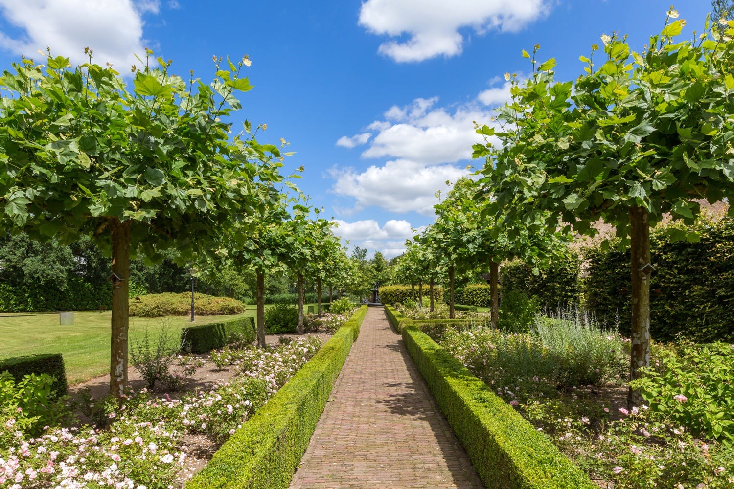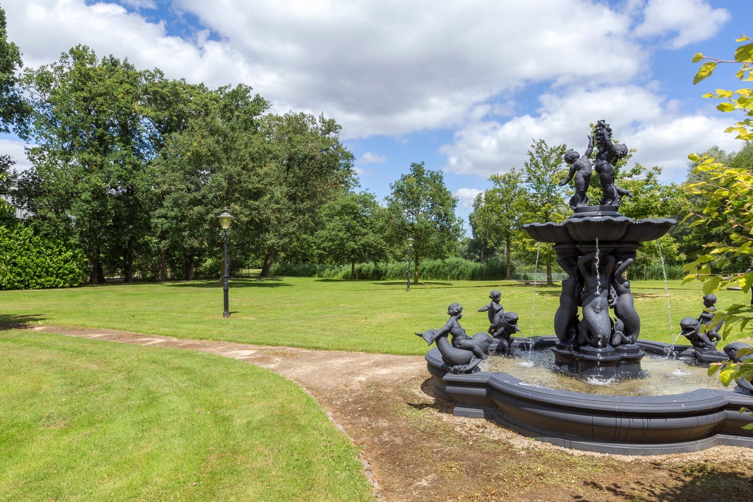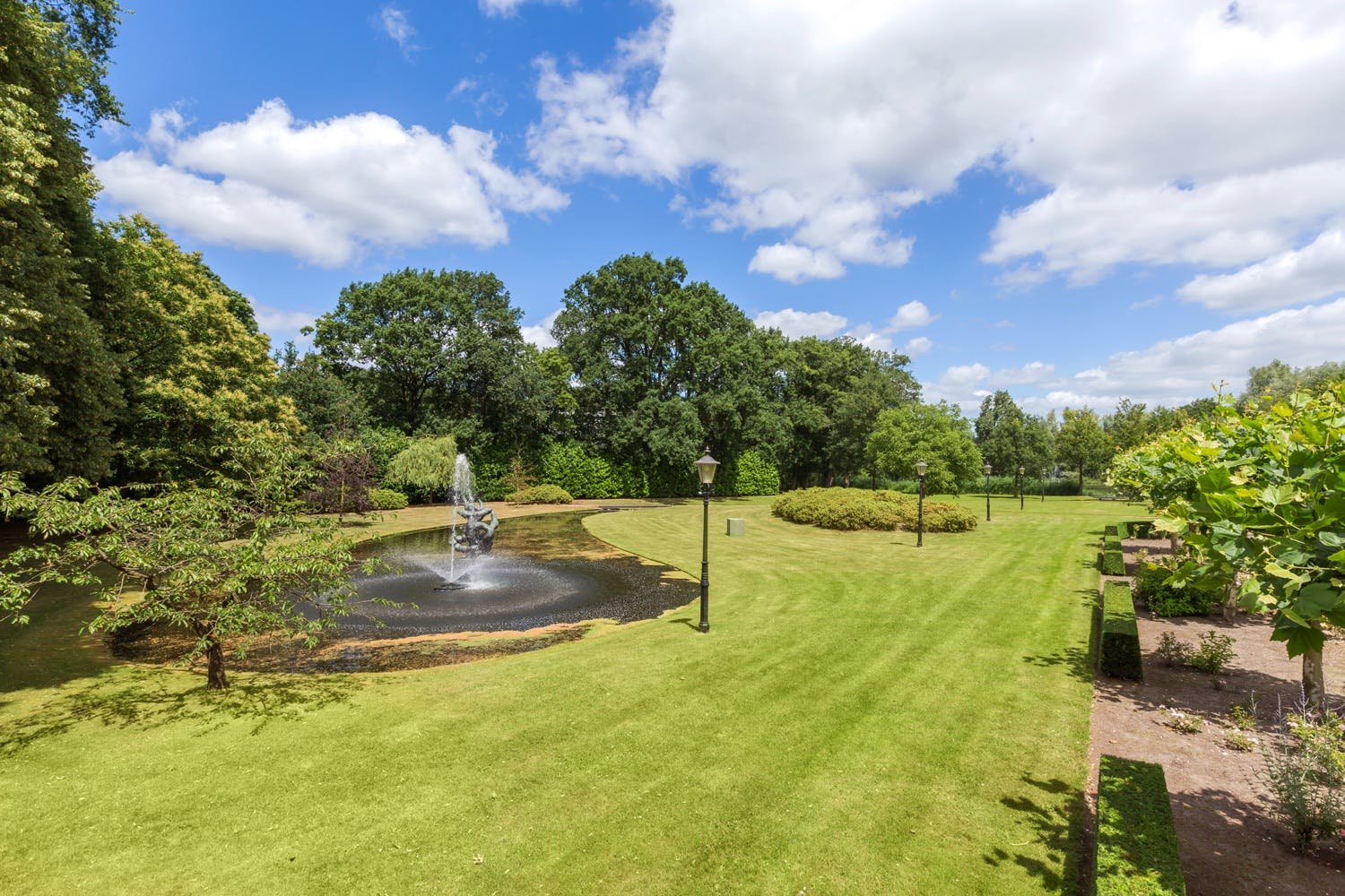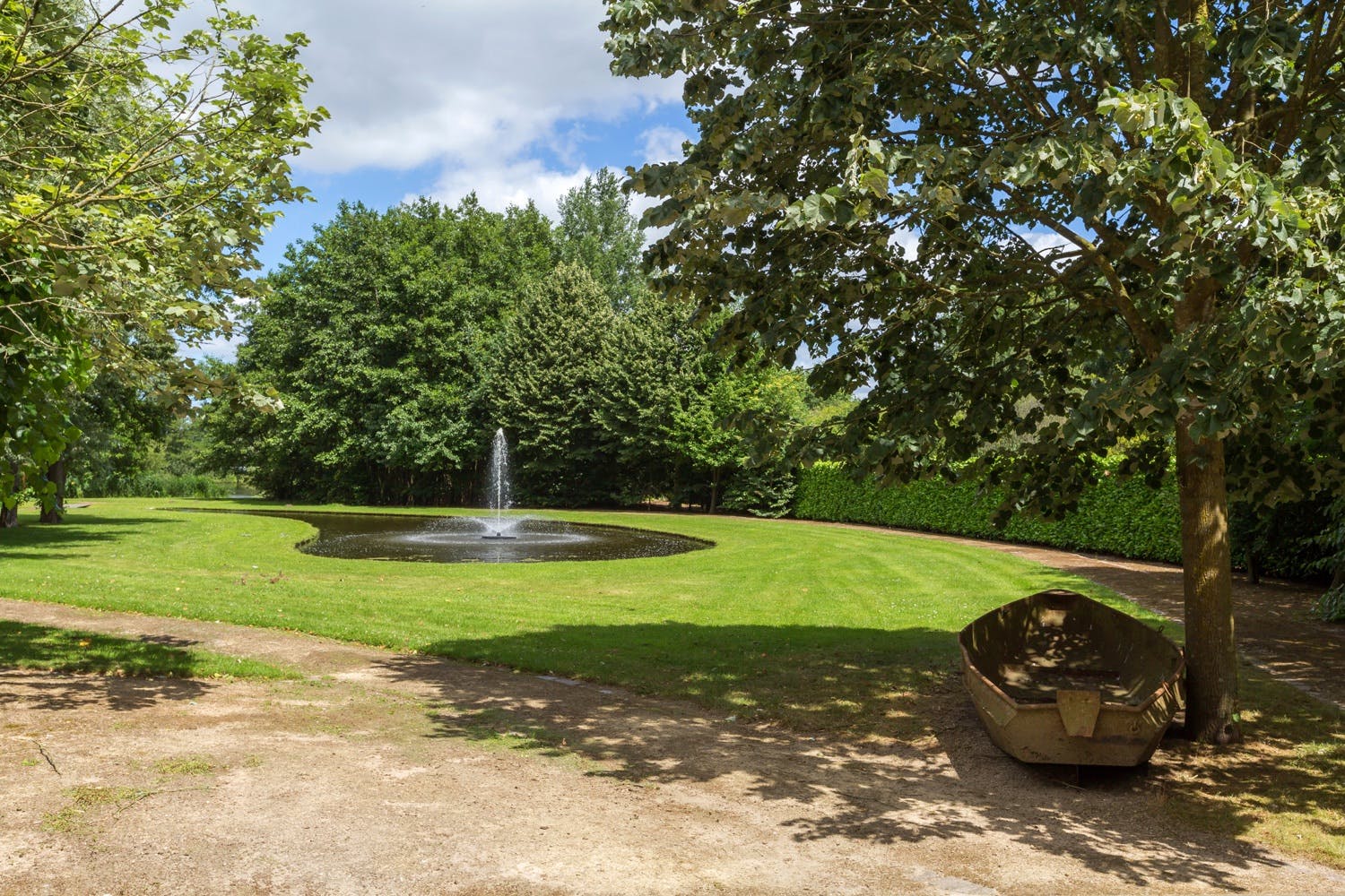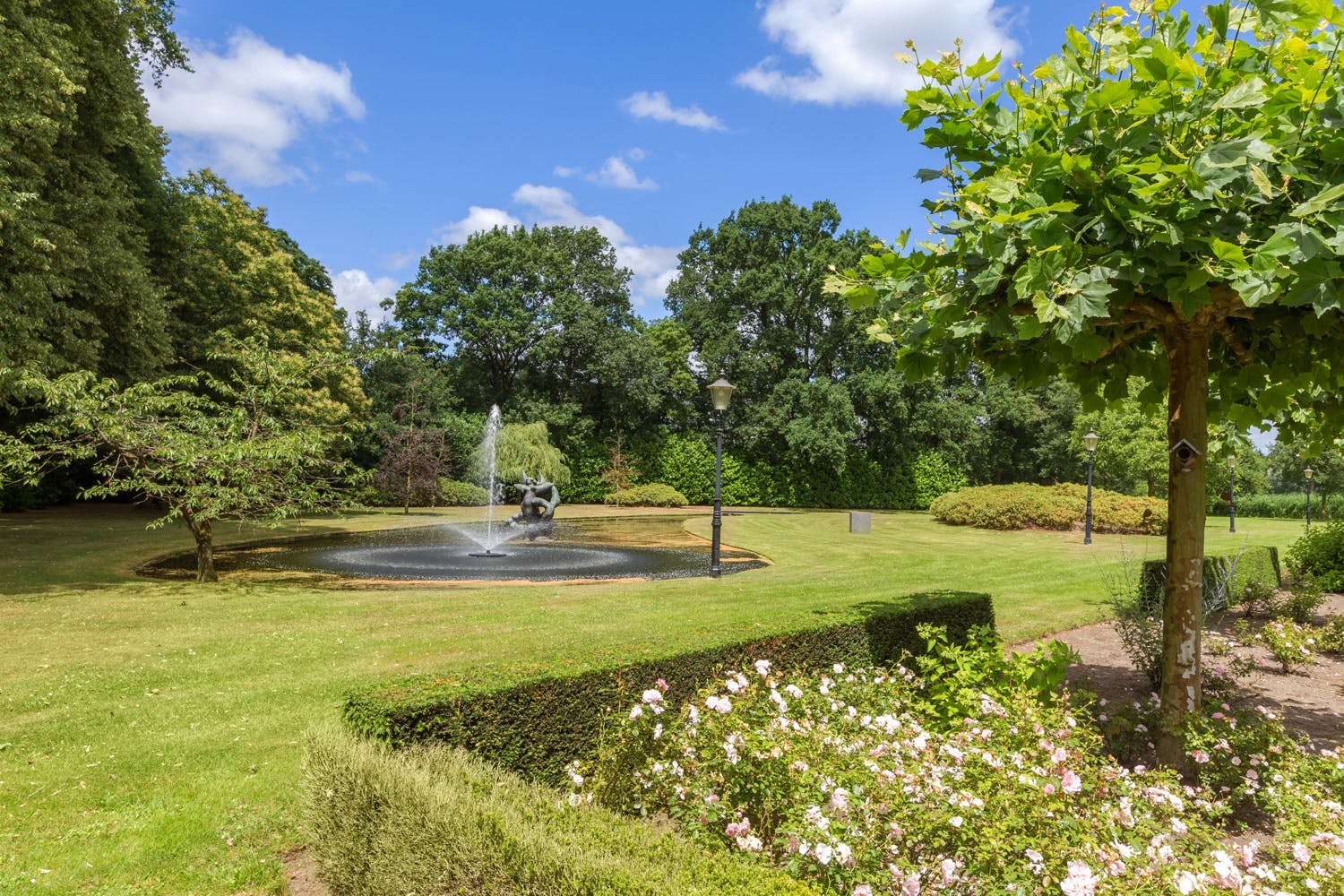 Het park is van grote allure. Allereerst de lange statige oprijlaan; deze heeft een op afstand bedienbare toegangspoort en wordt geflankeerd door fraaie tuinlantaarns en oriëntatieverlichting. De beplanting in het park is zeer divers: volwassen beuken-, eiken-, platanen- en kastanjebomen worden speels afgewisseld door diverse fruitbomen, gegroepeerde rododendrons en prachtige waterpartijen met diverse fonteinen. Het grote natuurven en de waterland-tongen complementeren het geheel: met recht valt Huizen Venrode onder ‘het beste van het zuiden’.