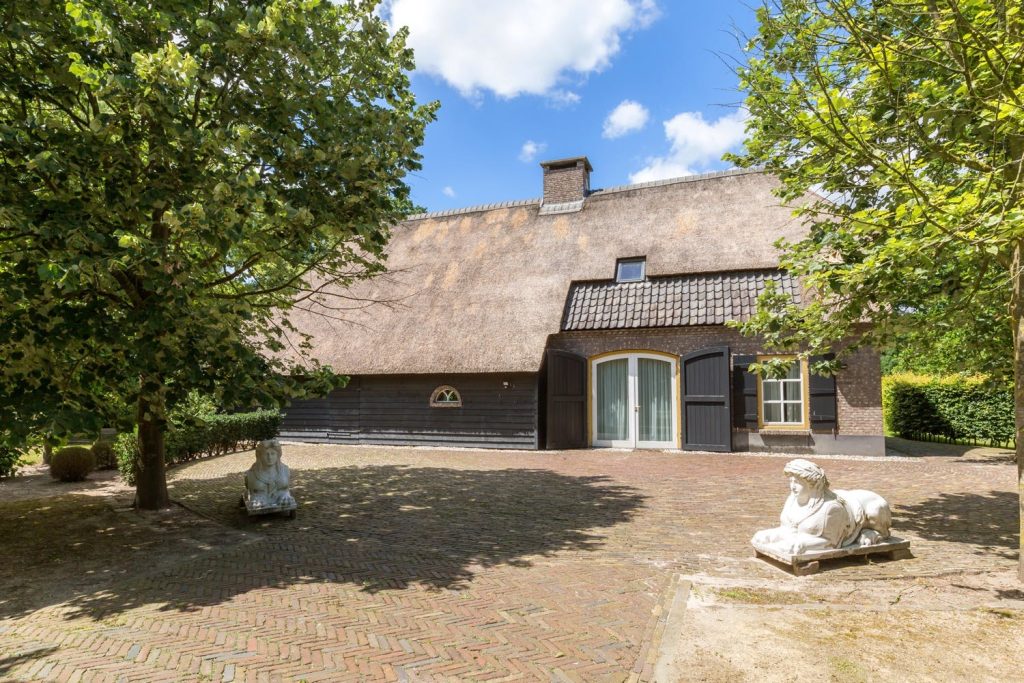 Een grote vrijstaande boerderij met rieten kap is gebouwd in 2005 en qua architectuur gestoeld op de bouwhistorie die in de regio vaak te vinden is. De boerderij is te gebruiken als guesthouse of afzonderlijk bedrijfsruimte (kantoor of praktijk). De De begane grond is ingedeeld met een mooie hal met toiletruimte, een zitkamer met gashaard, een goed geoutilleerde keuken met veel bergruimte en alle benodigde inbouwapparatuur en tenslotte is er een royale woonkamer annex kantoor-/vergaderruimte. Het materiaalgebruik is consequent van een uitzonderlijk hoog niveau; het prettige lichtinval wordt verkregen dankzij de vele ramen en de meerdere openslaande tuindeuren.