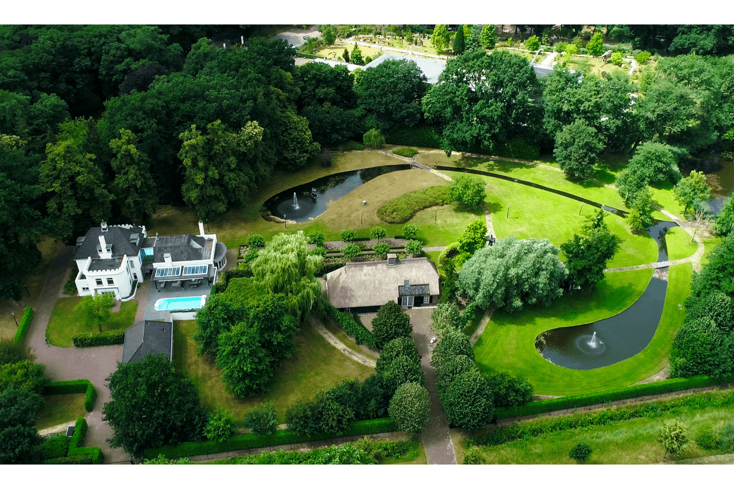 Rondom de villa ligt een privépark van circa 5,26 hectare waar u heerlijk in kunt wandelen, spelen, roeien, sporten of gewoon zittend op een bankje al uitkijkend over het ven kunt mijmeren.