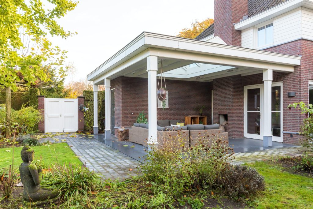 • groenblijvende beplanting, diverse gazons en twee overdekte terrassen waarvan één met buitenhaard;