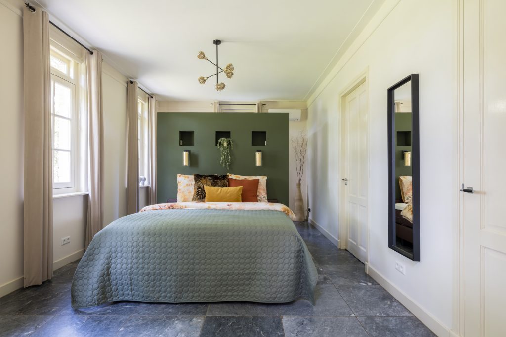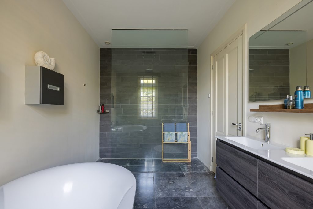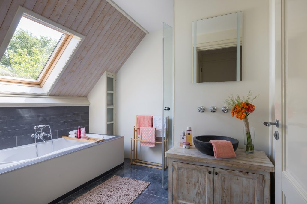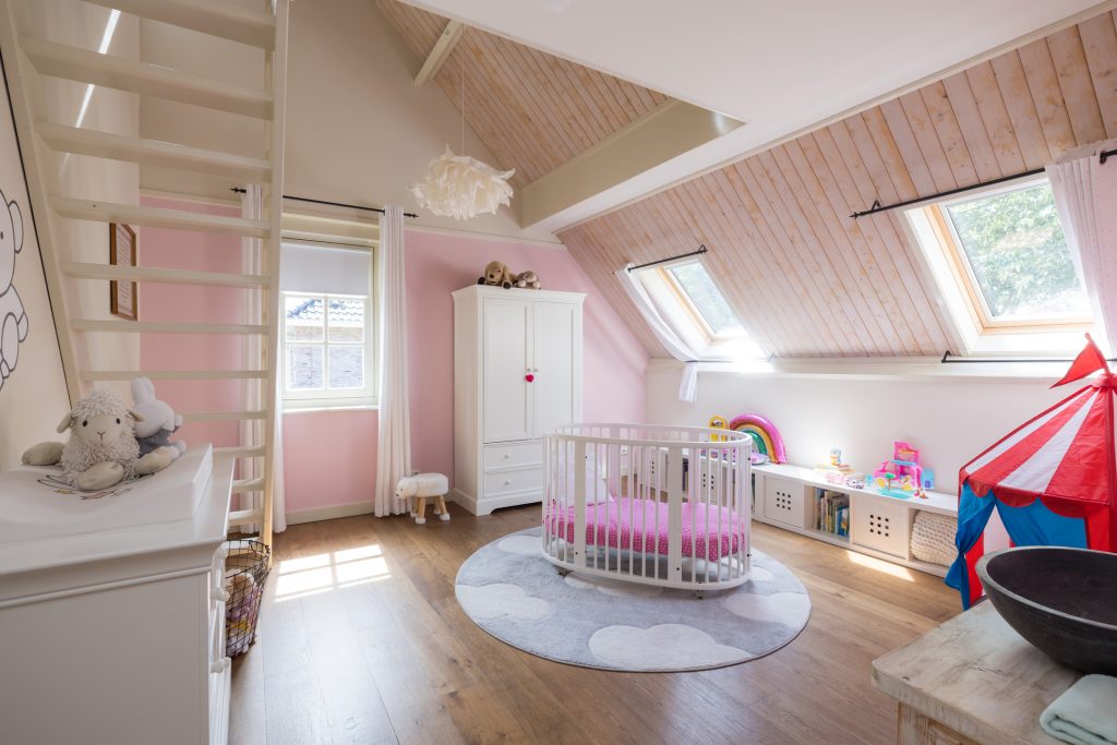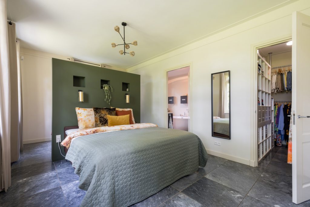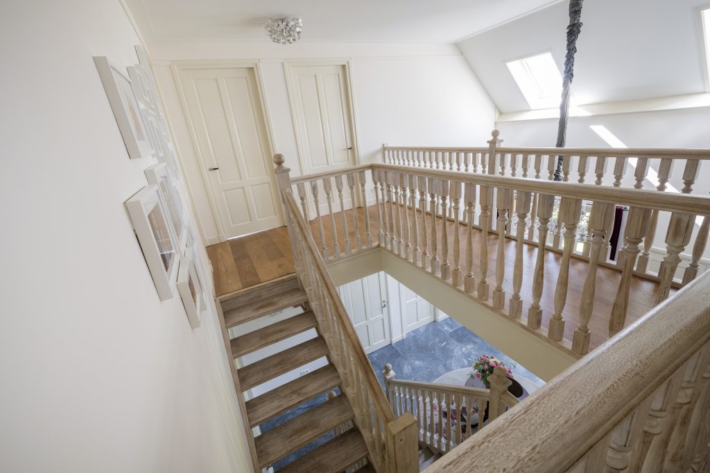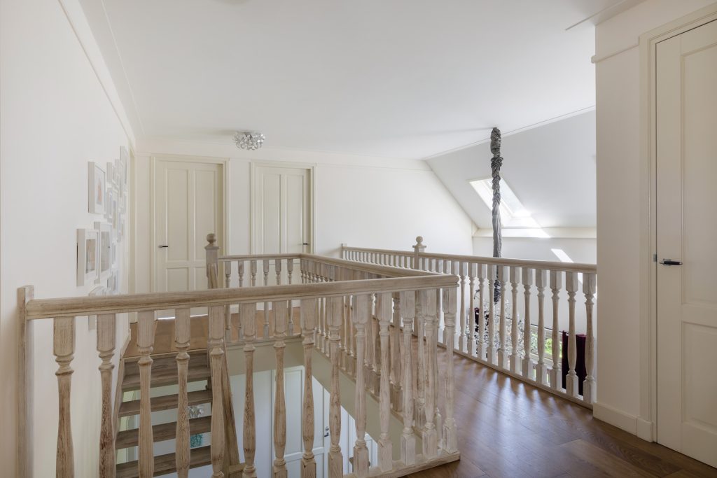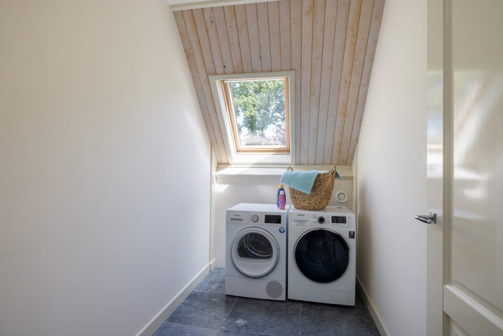 Vier ruime slaapkamers met elk een speelse slaapvide. De verdieping heeft een tweede badkamer met ligbad en inloopdouche. Daarnaast nog een praktische was-/strijkkamer voor de was-/droogcombinatie.