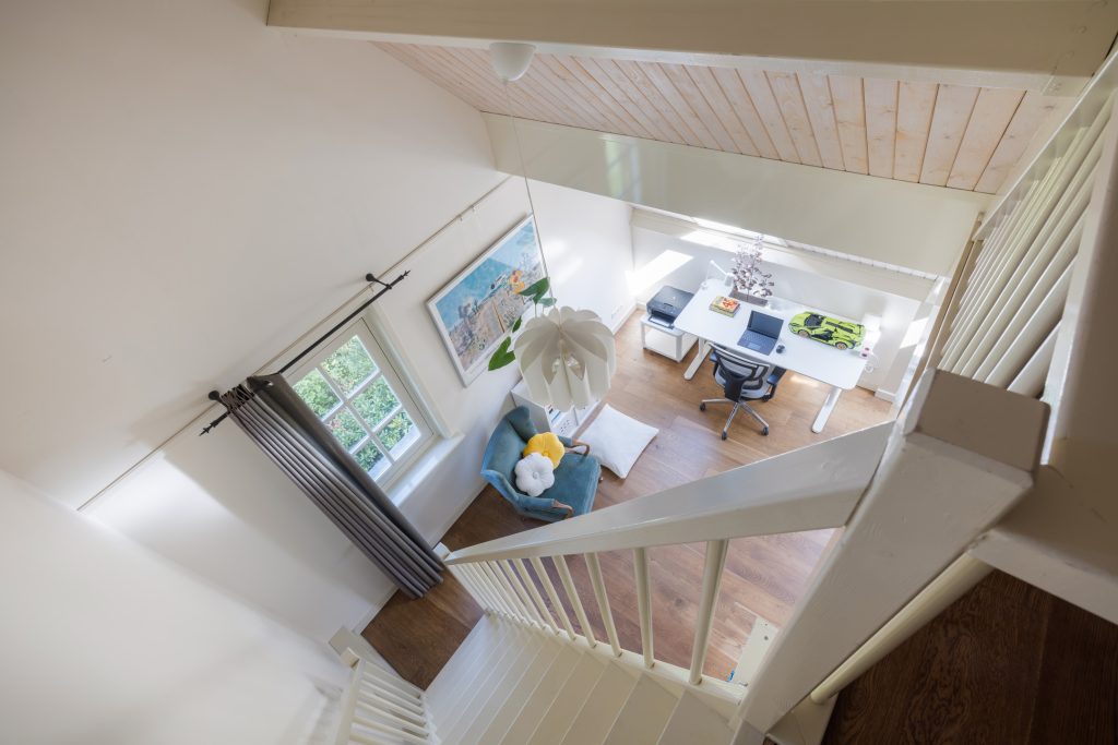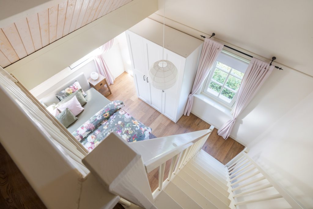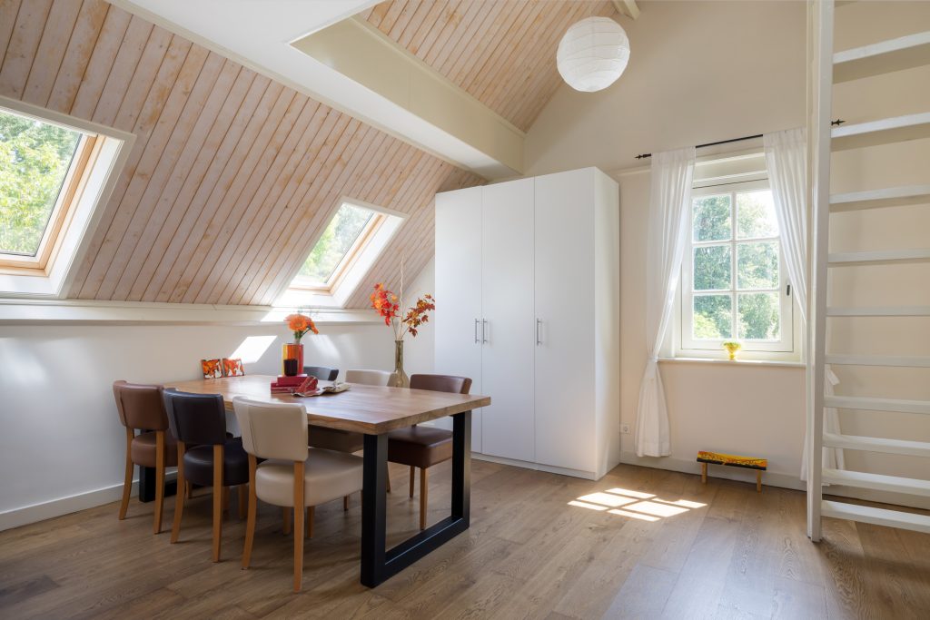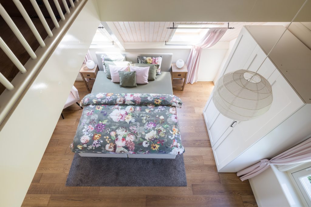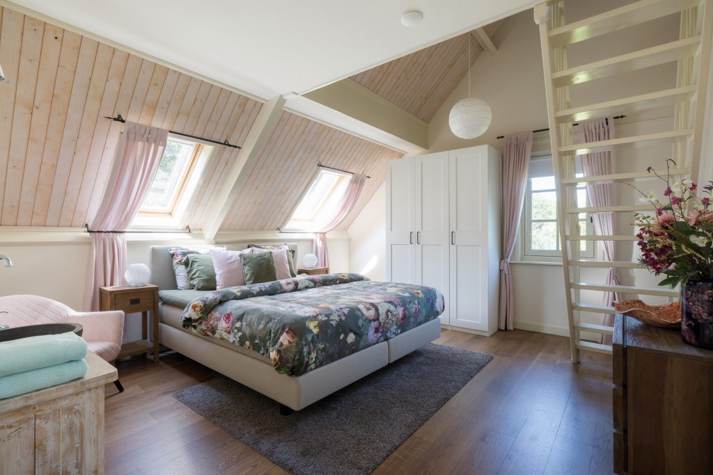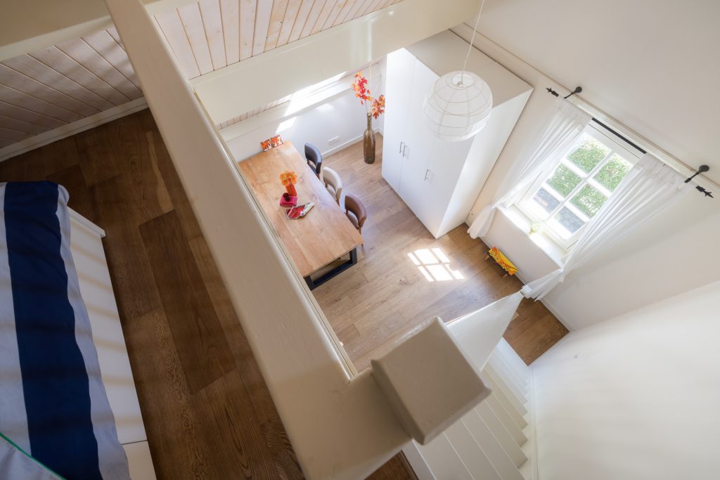 Extra ruime opbergruimte bereikbaar via de vide in een van de slaapkamers.