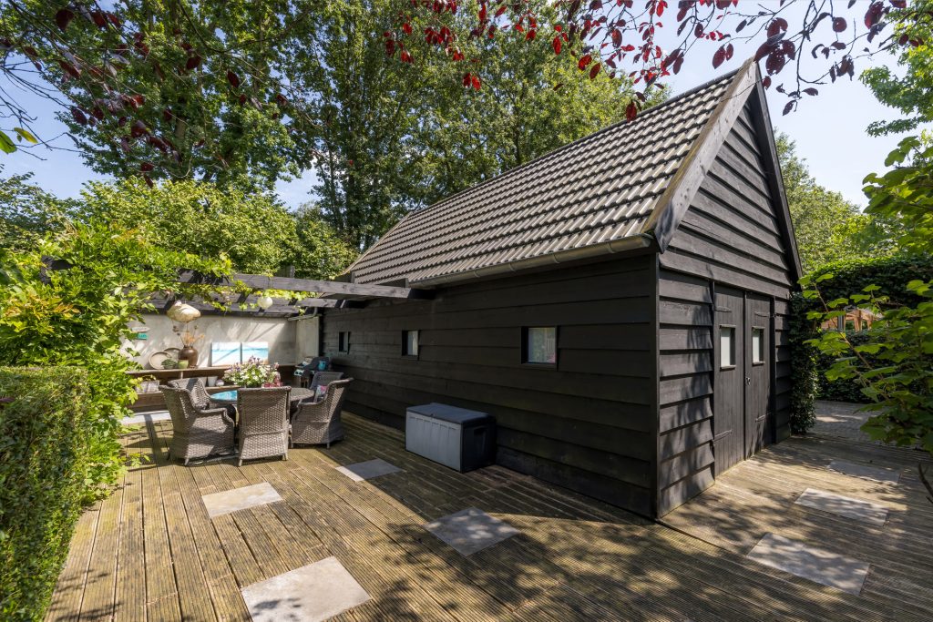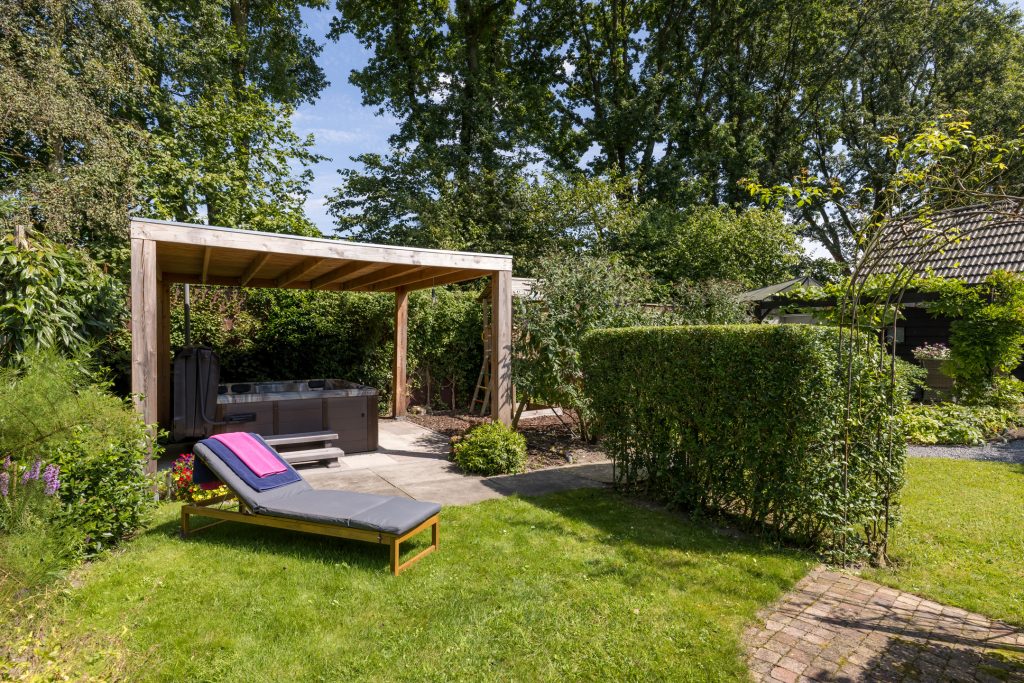 De tuin rondom het huis is een oase van rust en privacy met een jacuzzi om in te ontspannen en voldoende ruimte om van de mooi aangelegde tuin te genieten. De woning heeft daarnaast een grote garage en een ruime oprit voor meerdere auto’s. Met een karakteristieke uitstraling en moderne gemakken zoals een hybride warmtepompsysteem, is deze woning niet alleen energiezuinig, maar ook toekomstbestendig.
