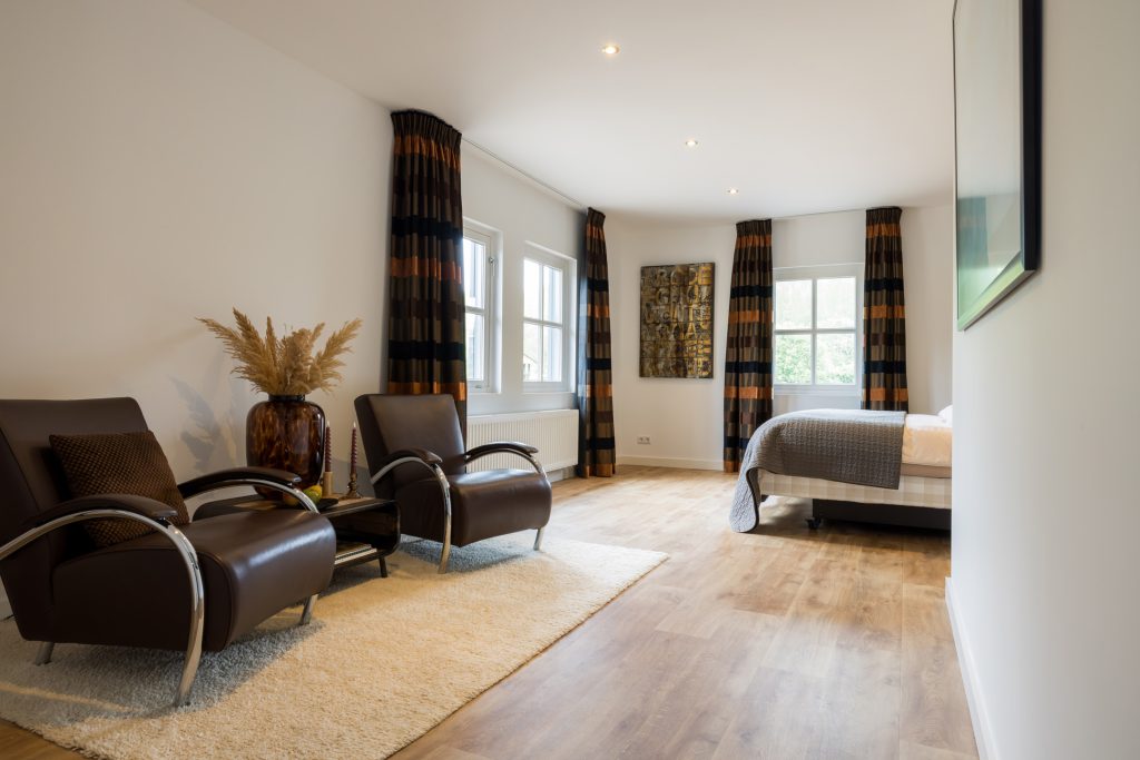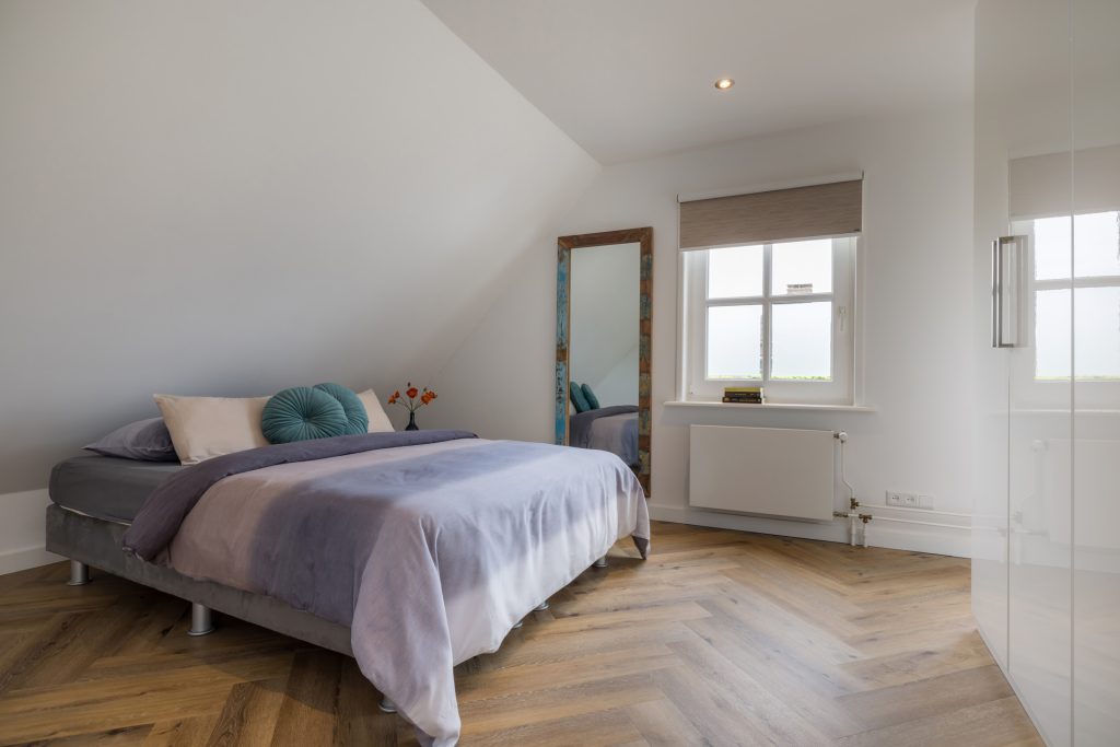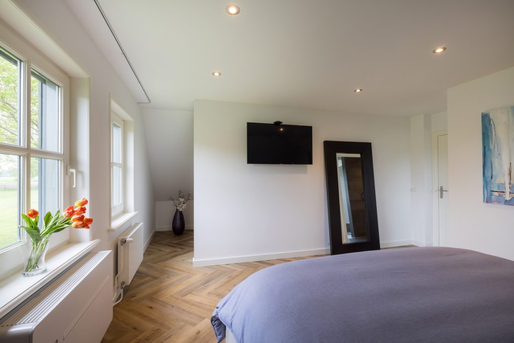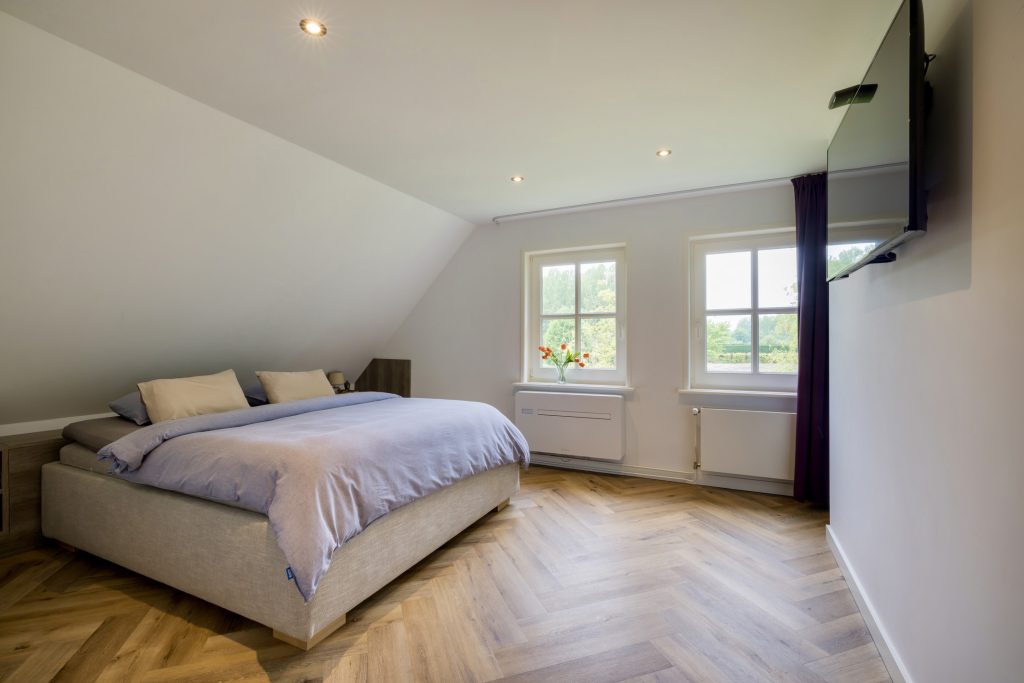 Volg de prachtige trap vanuit de hal naar de overloop waaraan drie slaapkamers en een ruime, luxe badkamer grenzen. Ook deze verdieping is in 2020 geheel verbouwd met gebruik van prachtige, hoogwaardige materialen.
