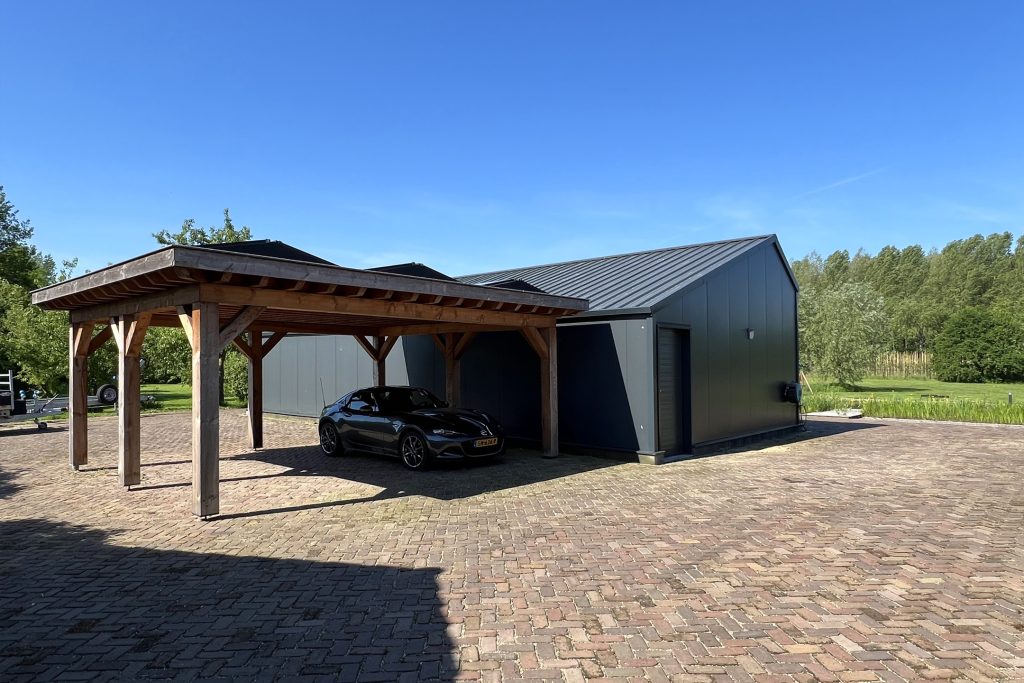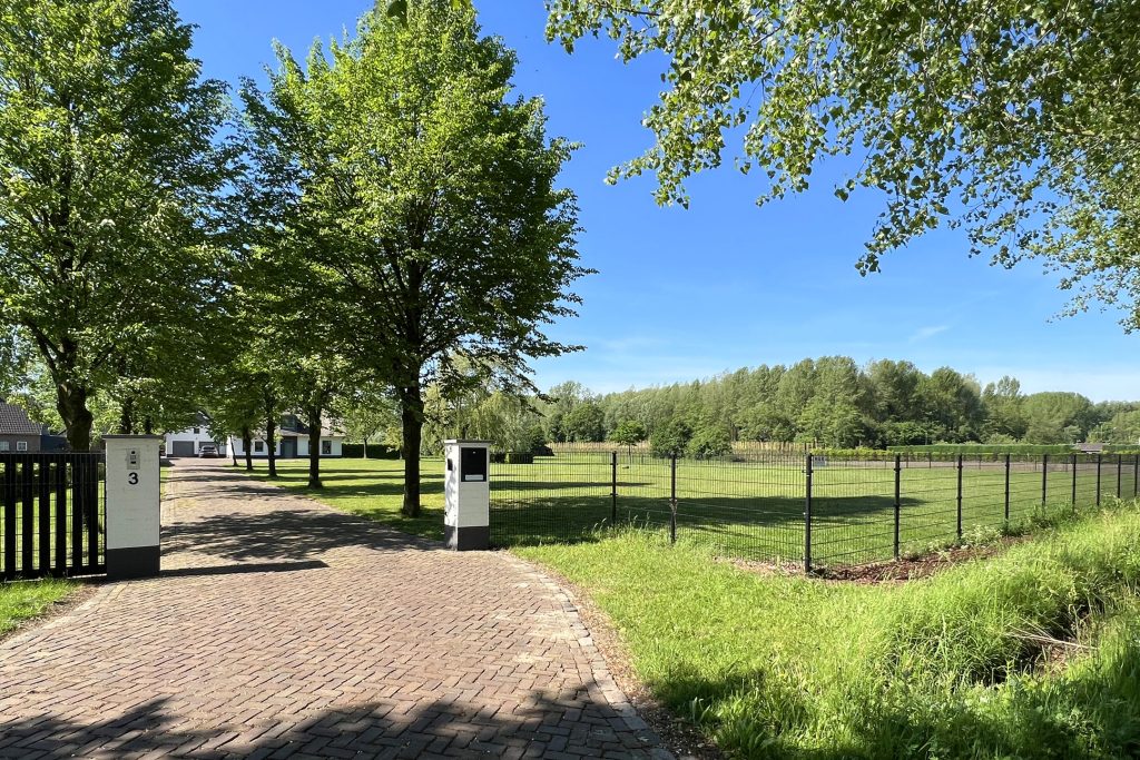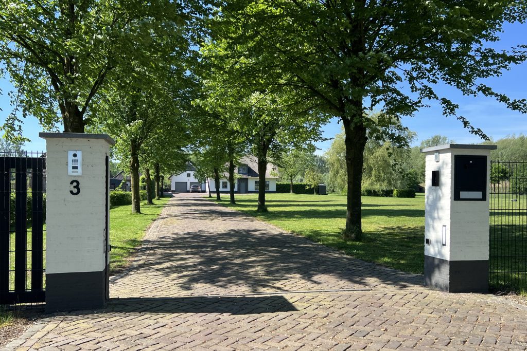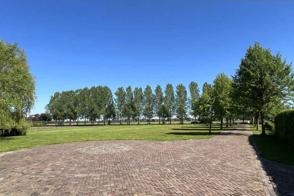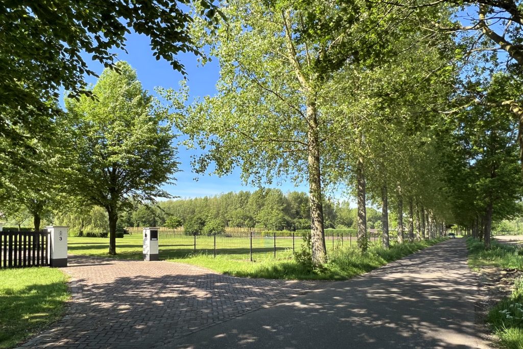 Via de met bomen omzoomde oprijlaan van ruim 70 meter rijdt u naar het prachtige landhuis. Voor de dubbele garage en onder de carport, aan de achterzijde van het landhuis, is ruime parkeergelegenheid voor uw auto’s, paardentrailer en andere voertuigen.