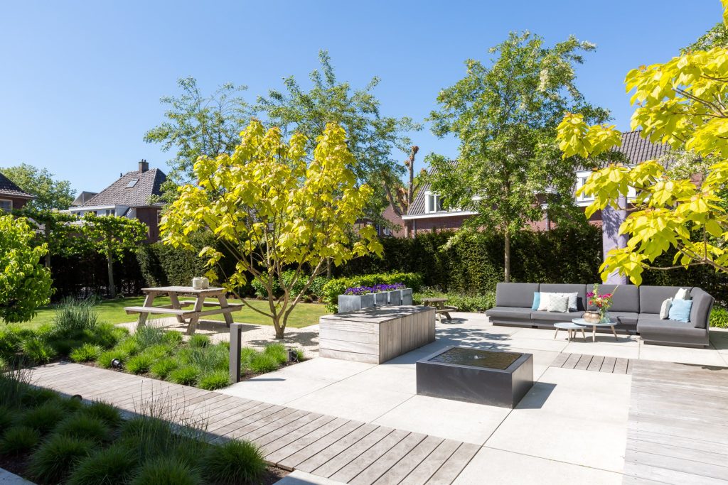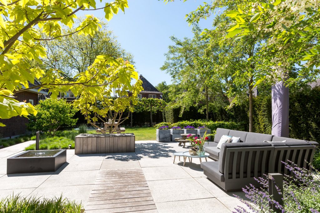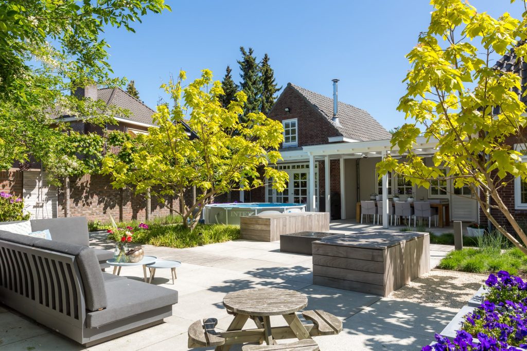 • onder architectuur aangelegde, privacybiedende achtertuin;