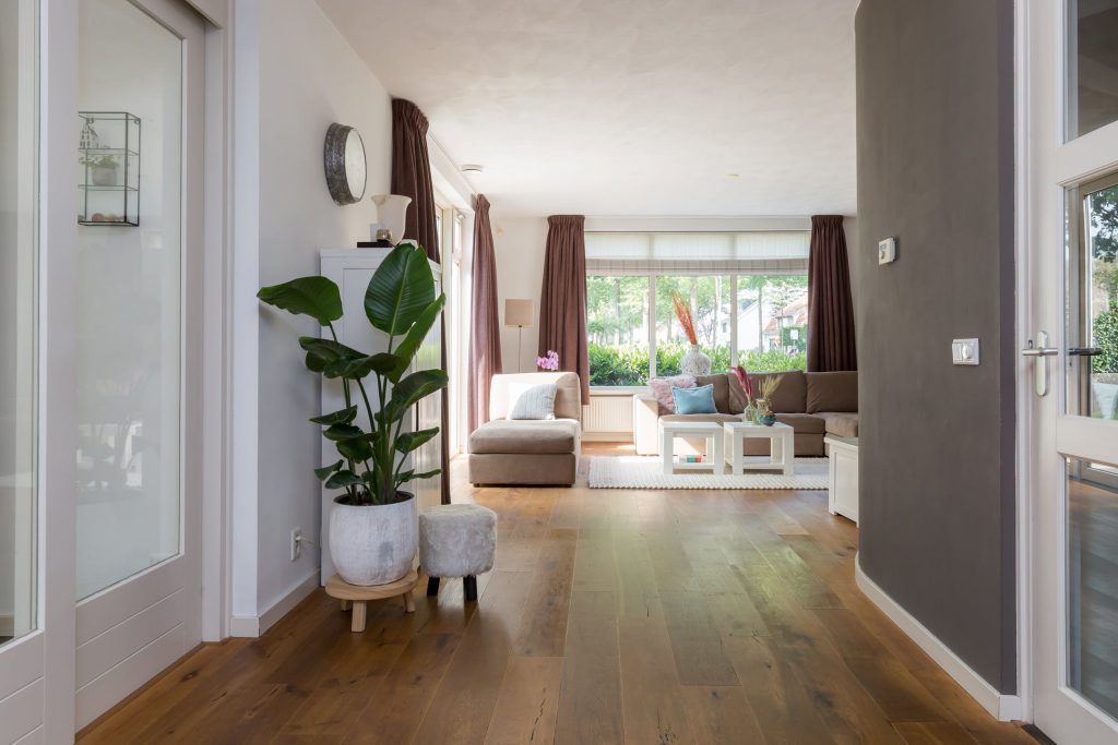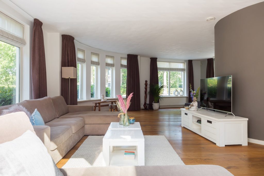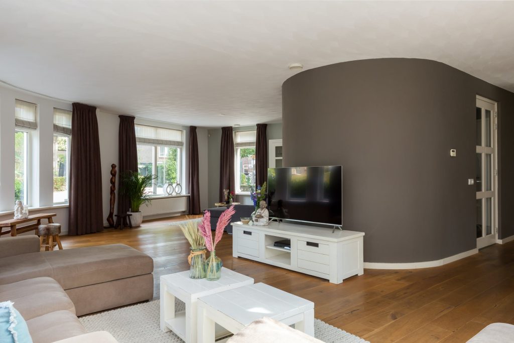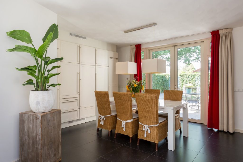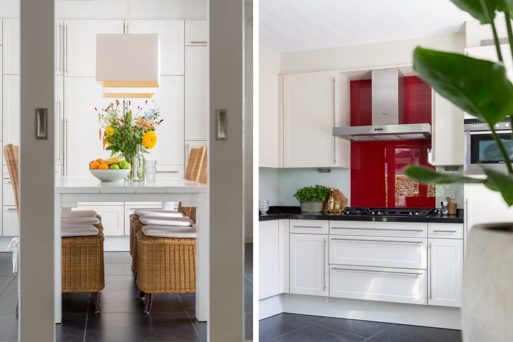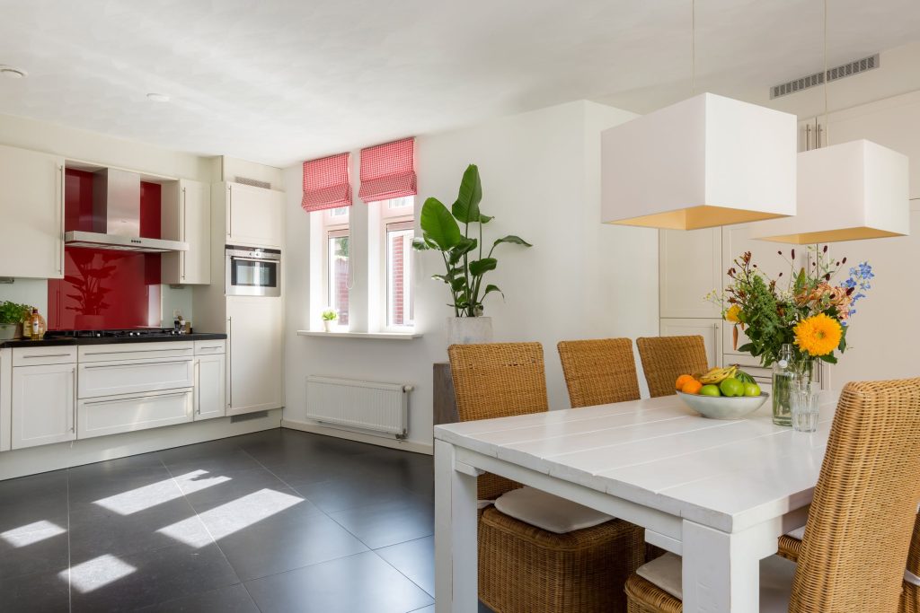 De woonkamer heeft een speelse indeling met meerdere zithoeken en staat in open verbinding met de ruime gezellige woonkeuken die is voorzien van alle gemakken waaronder twee koelkasten. Zowel de woonkamer als keuken bieden openslaande tuindeuren naar de achtertuin. De keuken met karakteristieke houten schuifdeuren is voorzien van vloerverwarming.