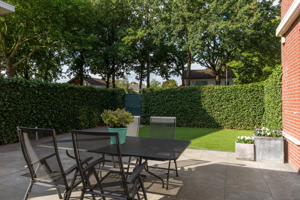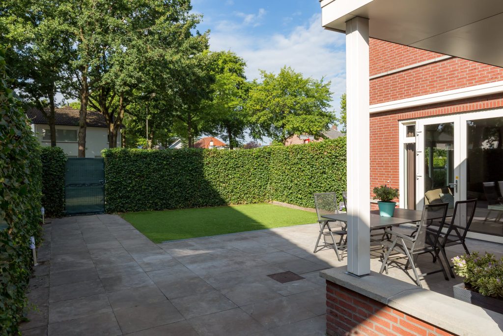 De vrijstaande woning beschikt over een zonnige, onderhoudsarme tuin met vrije achterom aan zowel de voor- als achterzijde. De tuin beschikt over buitenverlichting.