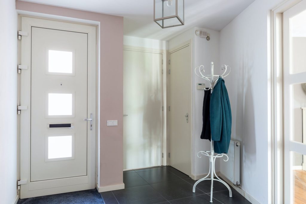 Overdekte entree. Ruime hal met toiletruimte, meterkast en trapopgang naar de eerste verdieping.