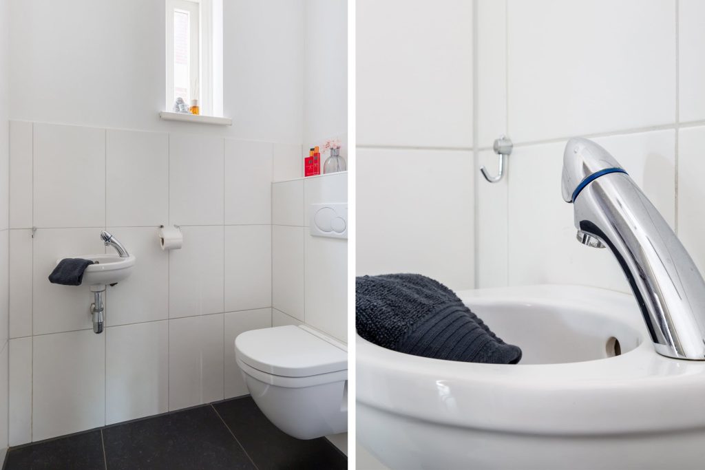 Tussen de keuken en de hal bevindt zich de bijkeuken met aansluitingen voor de wasapparatuur, uitstortgoot en een deur naar buiten.