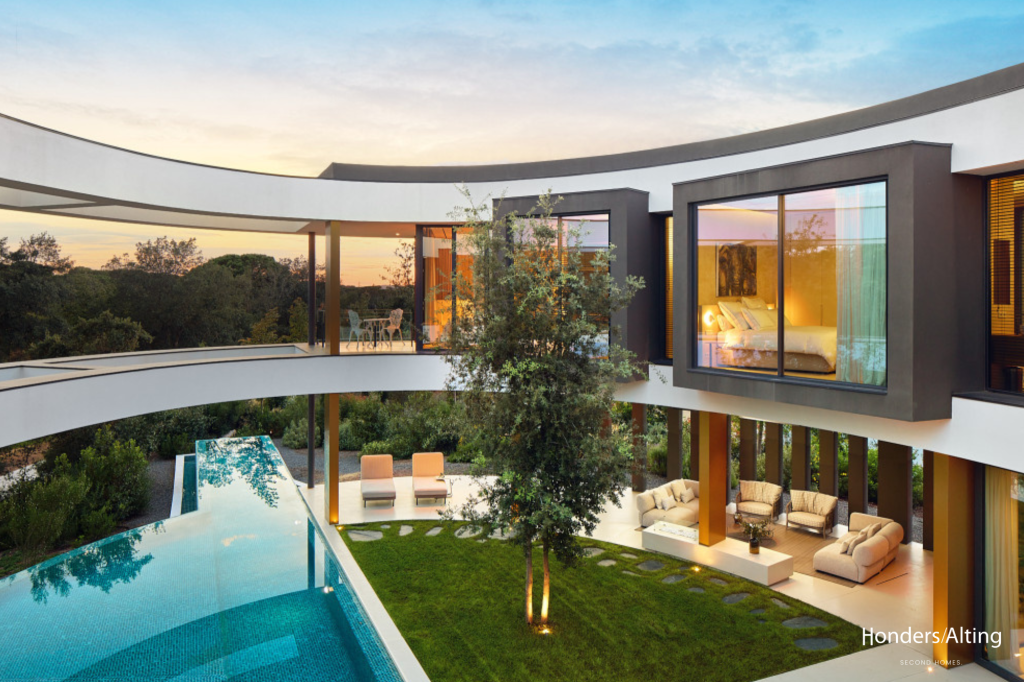 Met een woonoppervlak van circa 400 m² en een perceel van ruim 1.200 m² combineert Selva 25 rust, privacy en hoogwaardige architectuur in een groene omgeving. De villa telt vier ruime slaapkamers, vier badkamers, een strakke keuken met kookeiland, een ruime living met open haard en meerdere patio’s die binnen en buiten naadloos met elkaar verbinden. Dankzij de glazen puien en de slimme oriëntatie ervaar je vanuit elke ruimte zicht op de tuin, het zwembad of de baan.