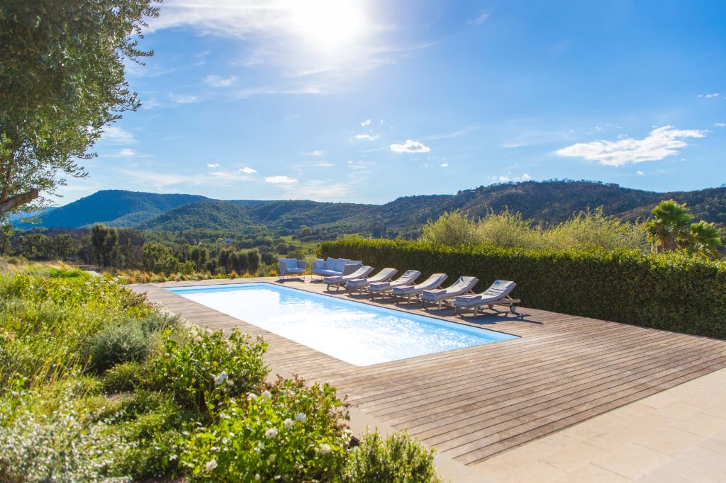 Onder architectuur gebouwde villa met vijf slaapkamers en-suite, gelegen in Cogolin, op 15 minuten van Saint Tropez en de stranden.