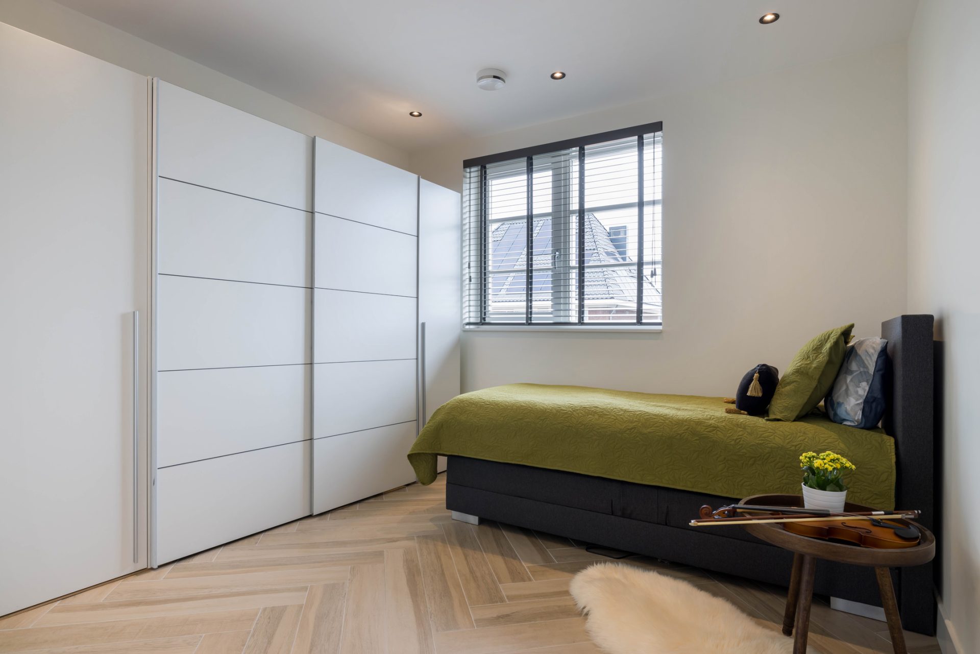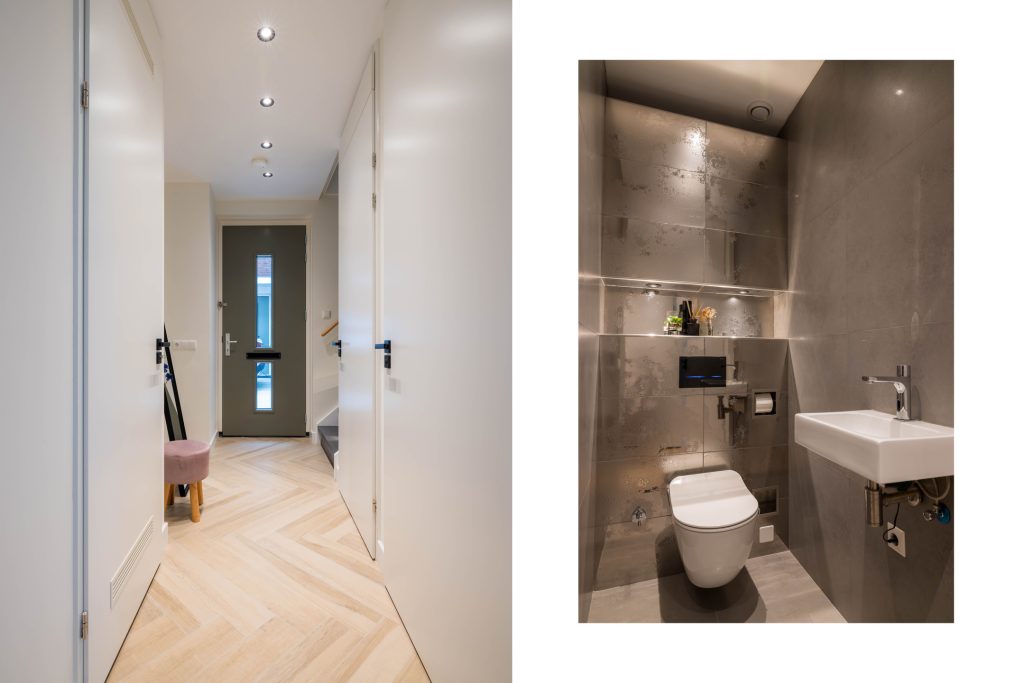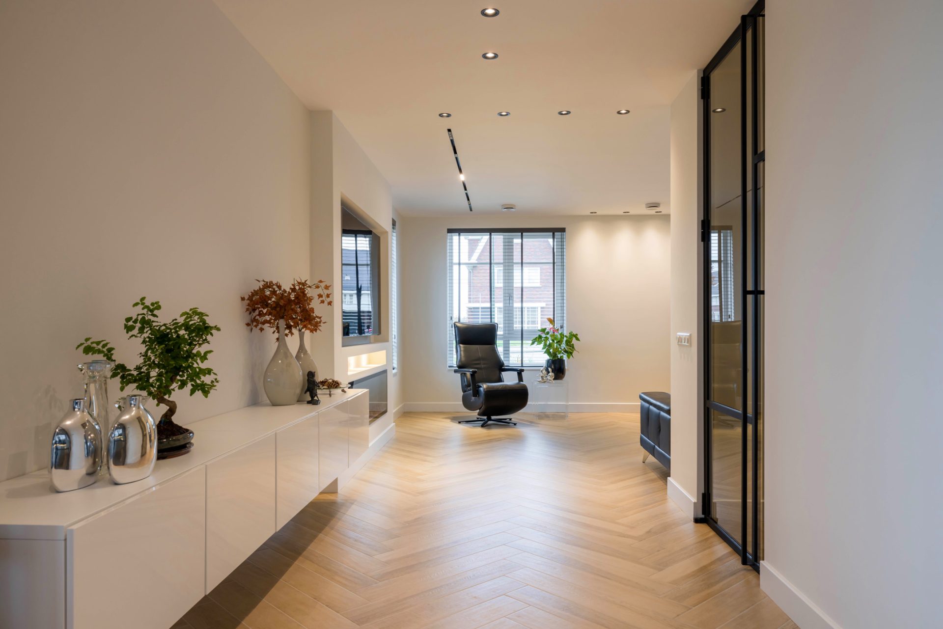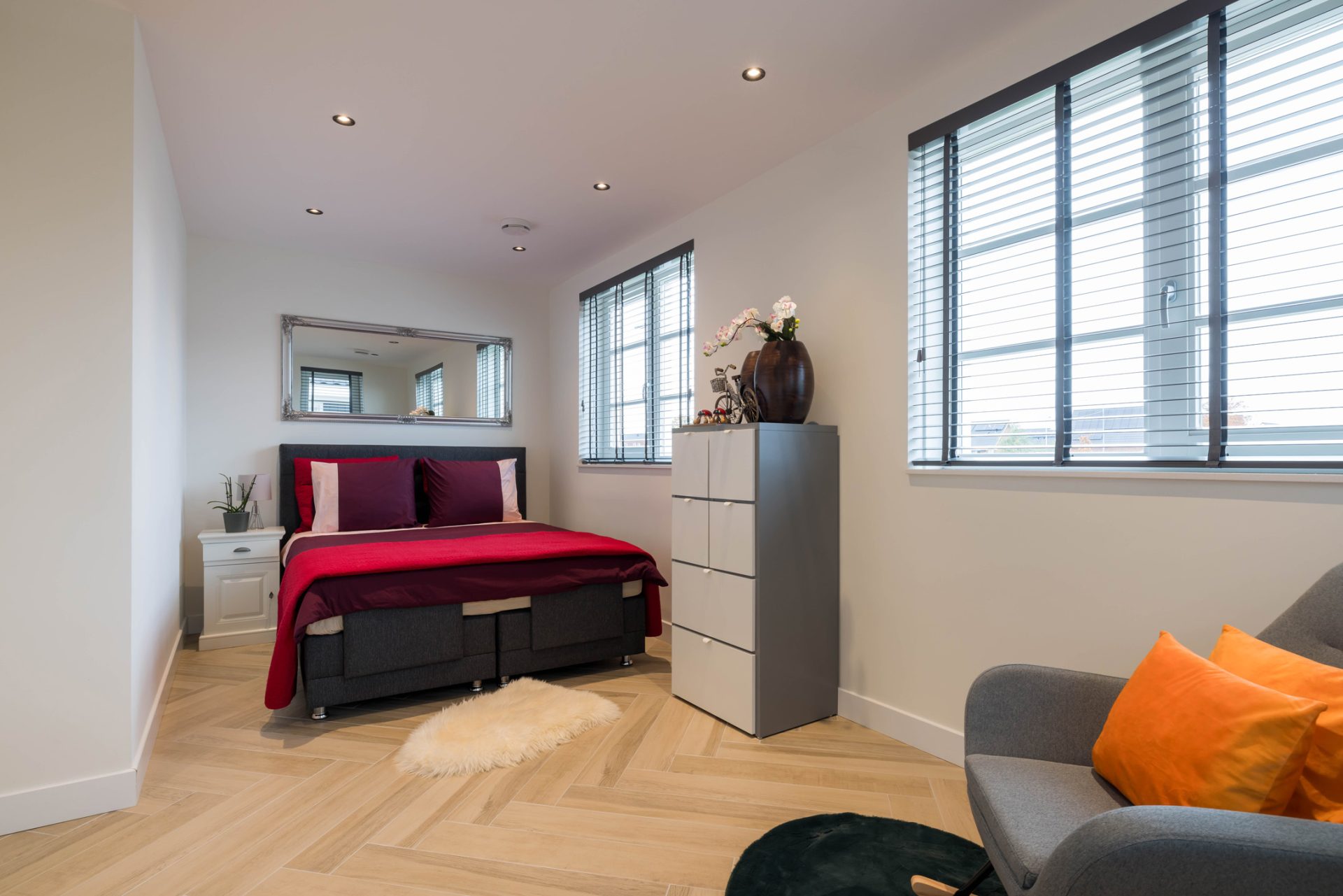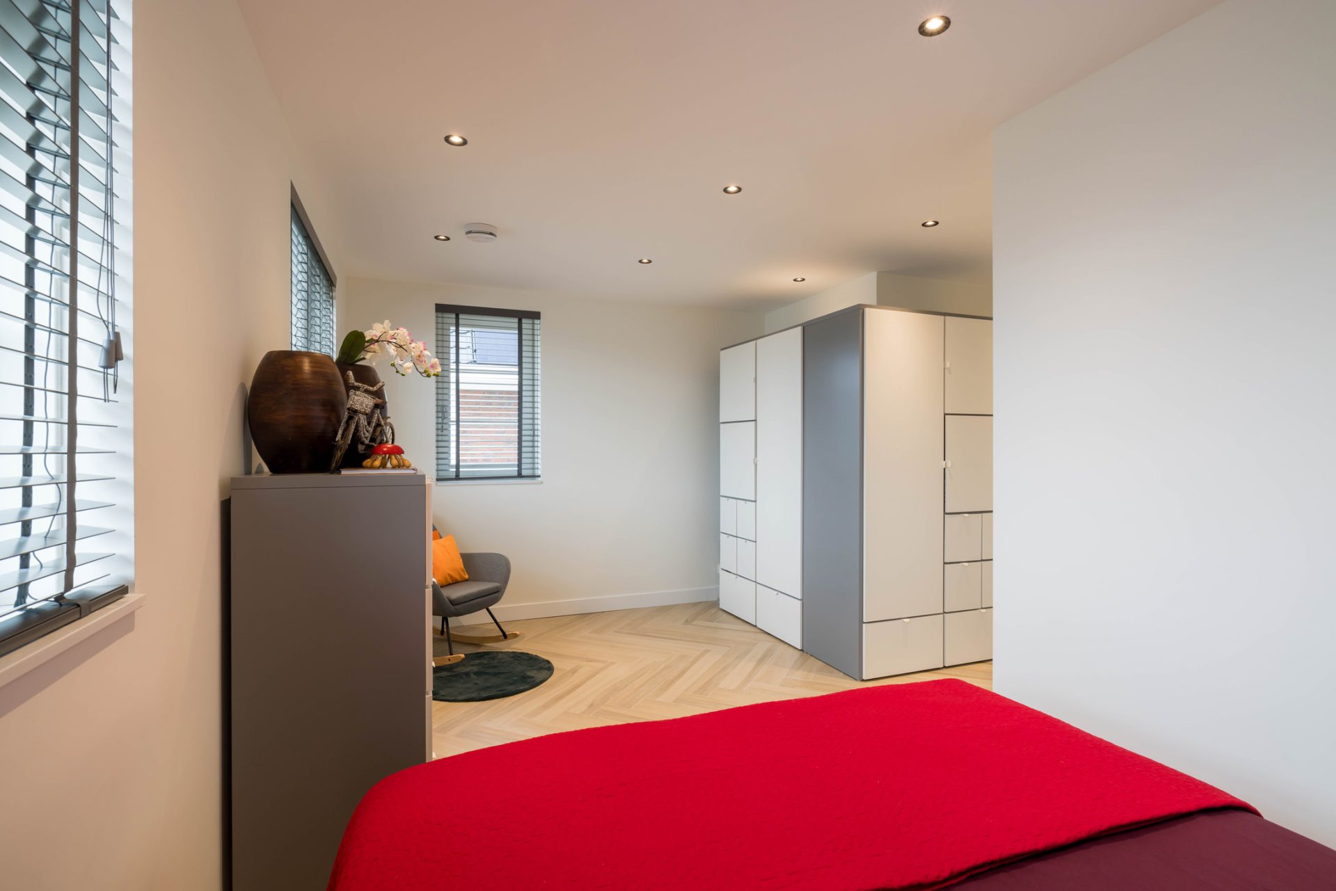 Verrassend is de indeling op de eerste verdieping met drie ruime slaapkamers, een luxe badkamer en een aparte toiletruimte. Er ligt, net als op de begane grond, een visgraatvloer met vloerverwarming en de plafonds zijn fraai afgewerkt met inbouwverlichting.
