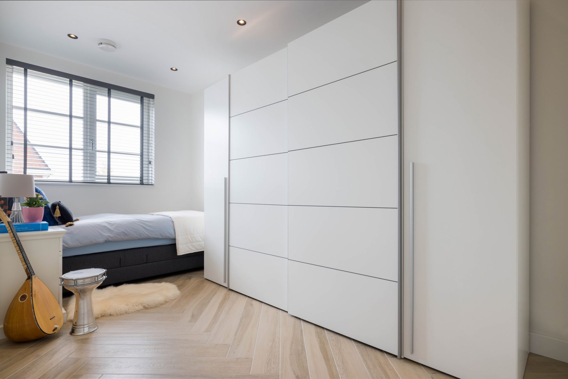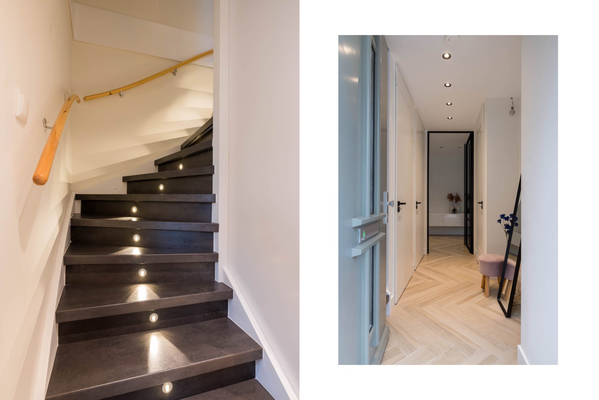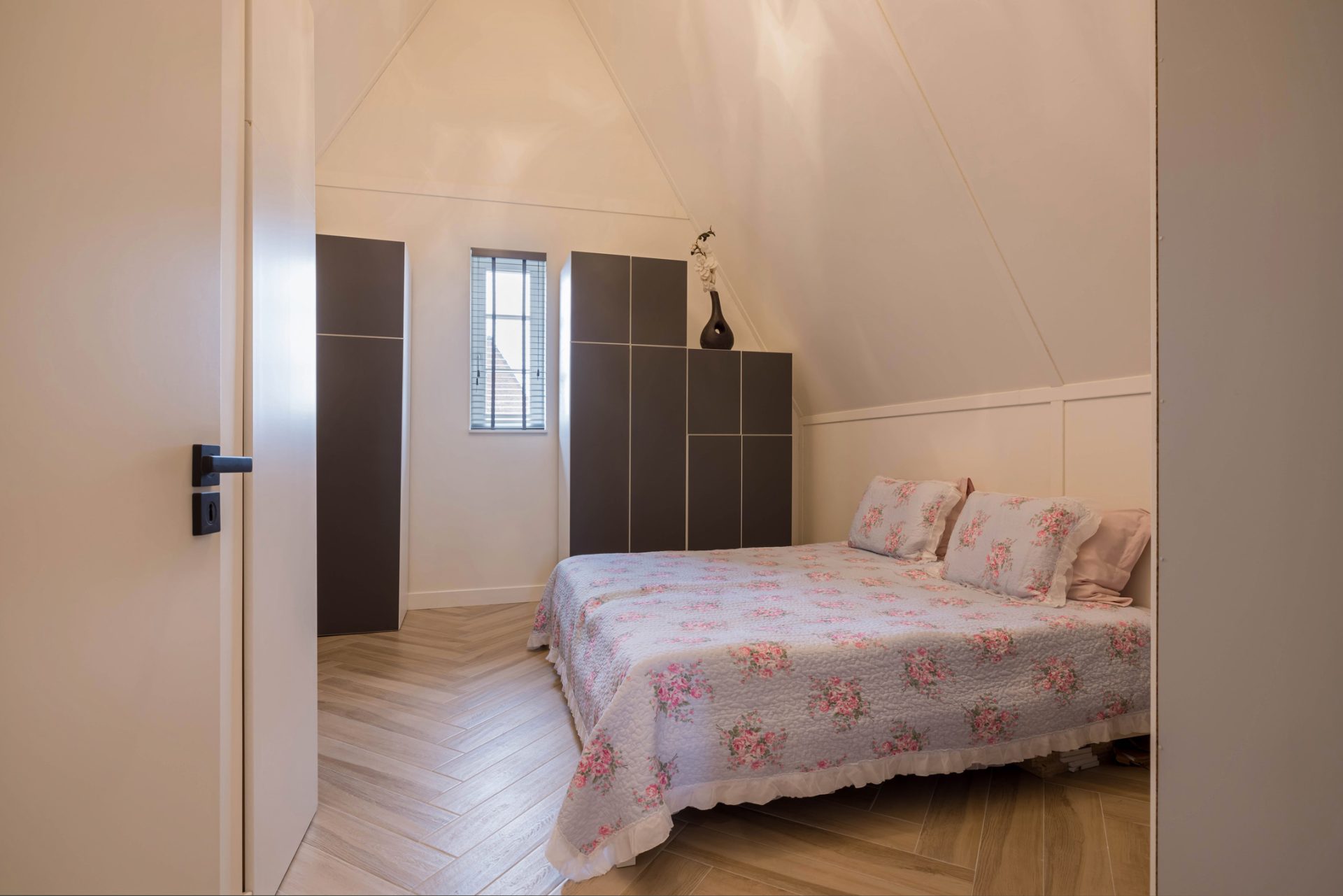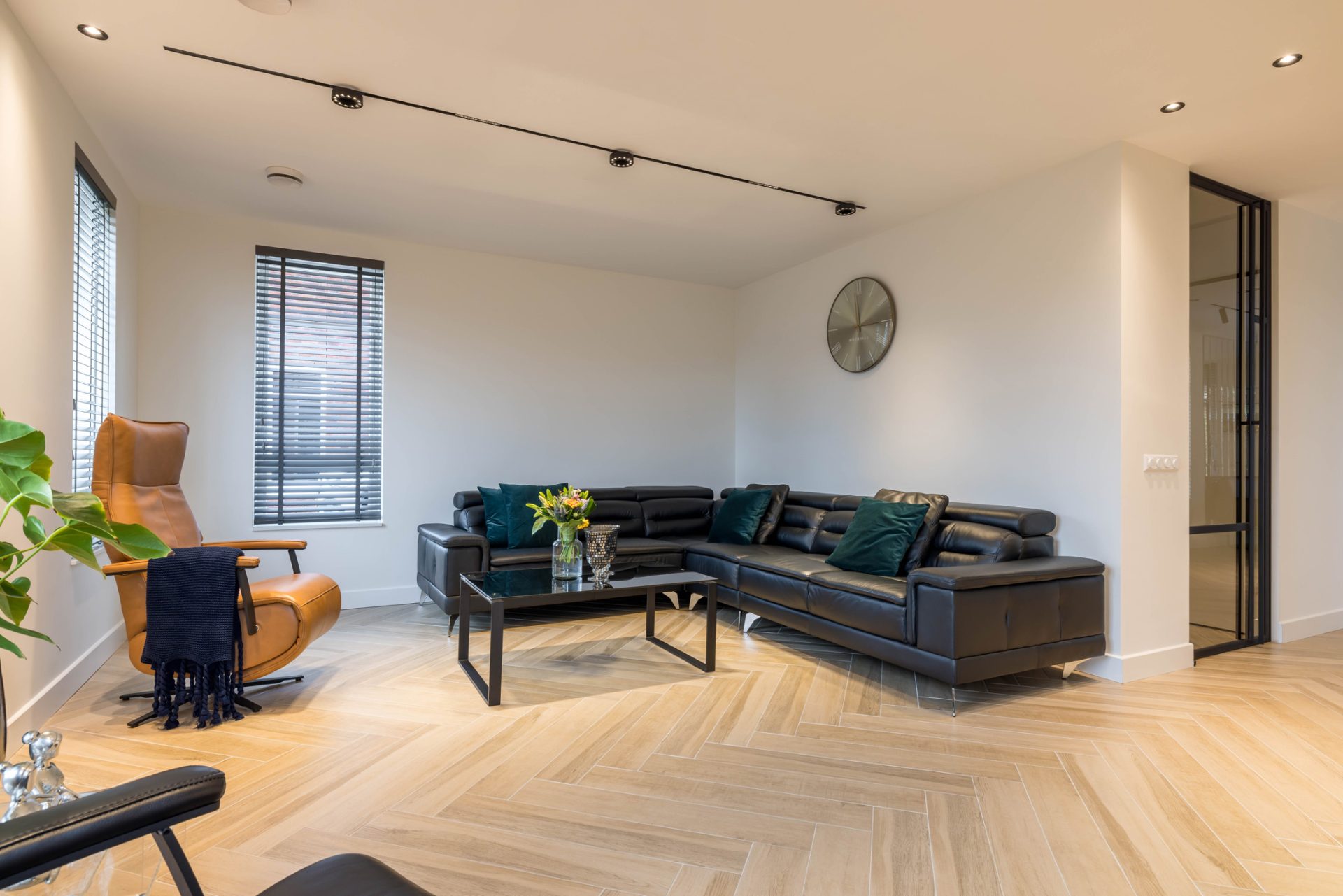 Verrassend is de indeling op de eerste verdieping met drie ruime slaapkamers, een luxe badkamer en een aparte toiletruimte. Er ligt, net als op de begane grond, een visgraatvloer met vloerverwarming en de plafonds zijn fraai afgewerkt met inbouwverlichting.