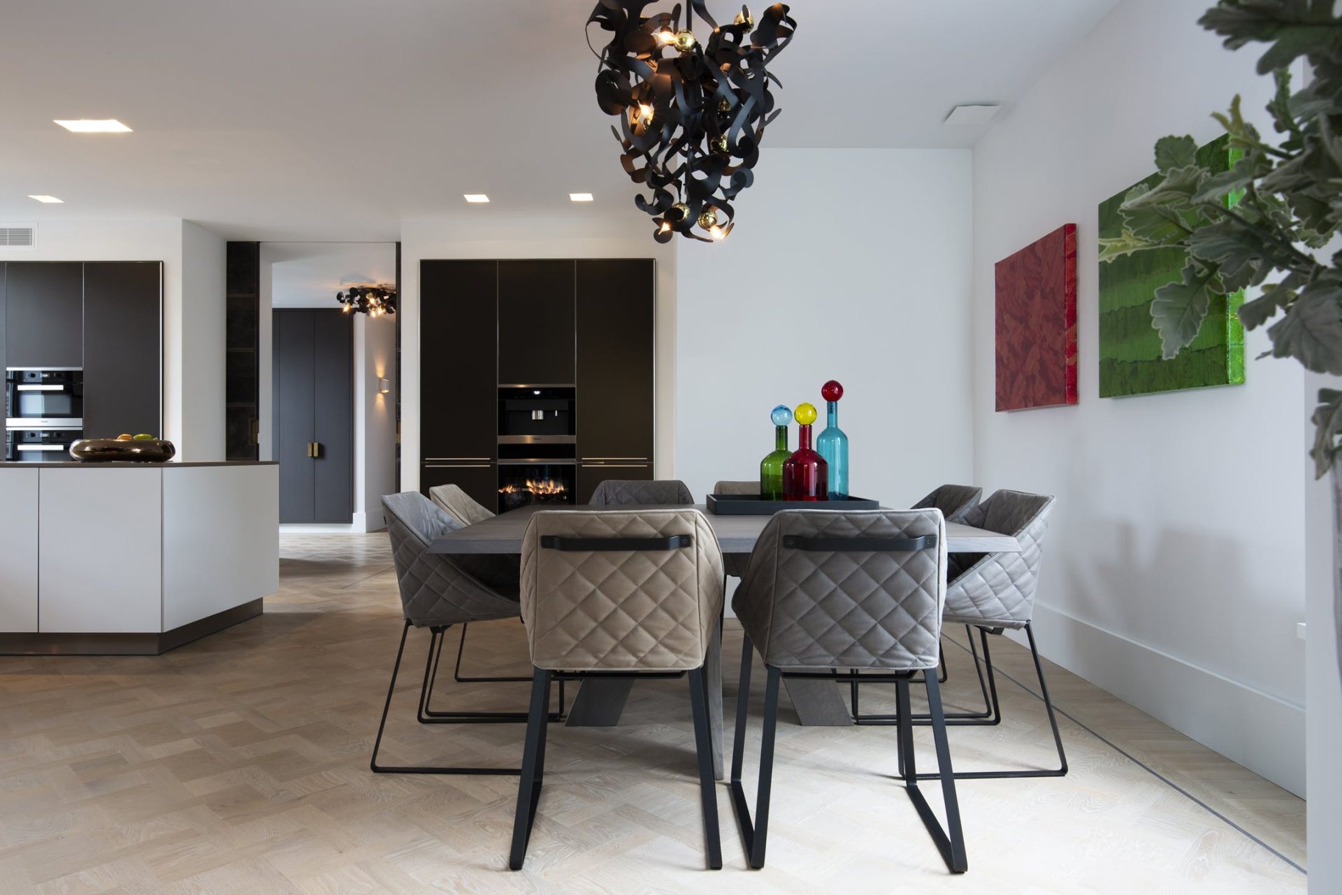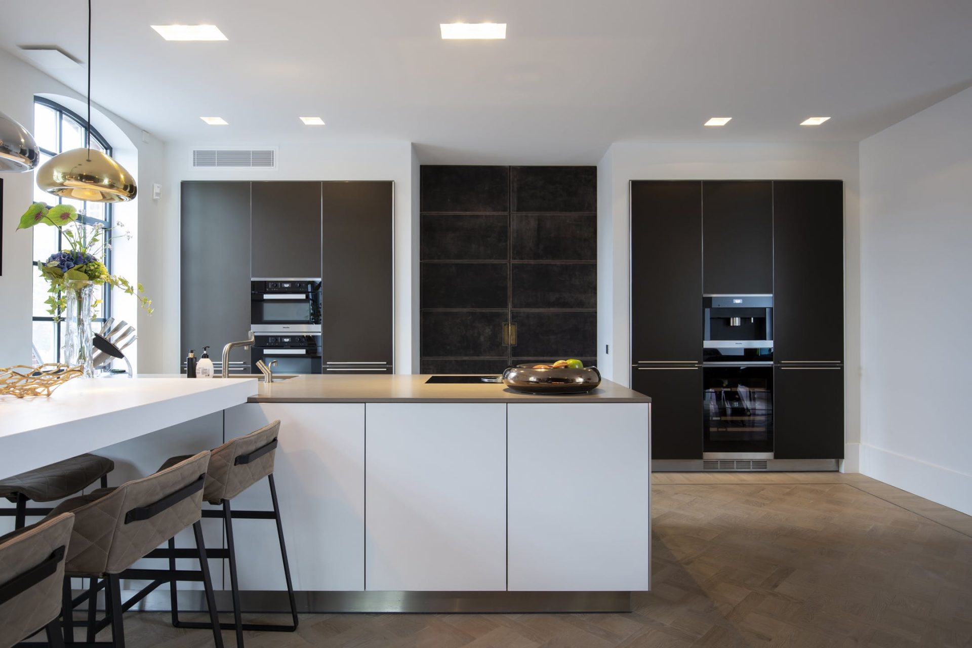 • de keuken is voorzien van alle denkbare inbouwapparatuur zoals inductiekookplaat, Bora afzuiging, oven, combi-oven, vaatwasser, quooker, koffiemachine, wijnkast en koel-/vriescombinatie met ingebouwde ijsblokjesmachine