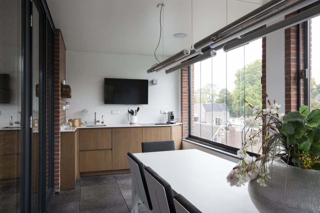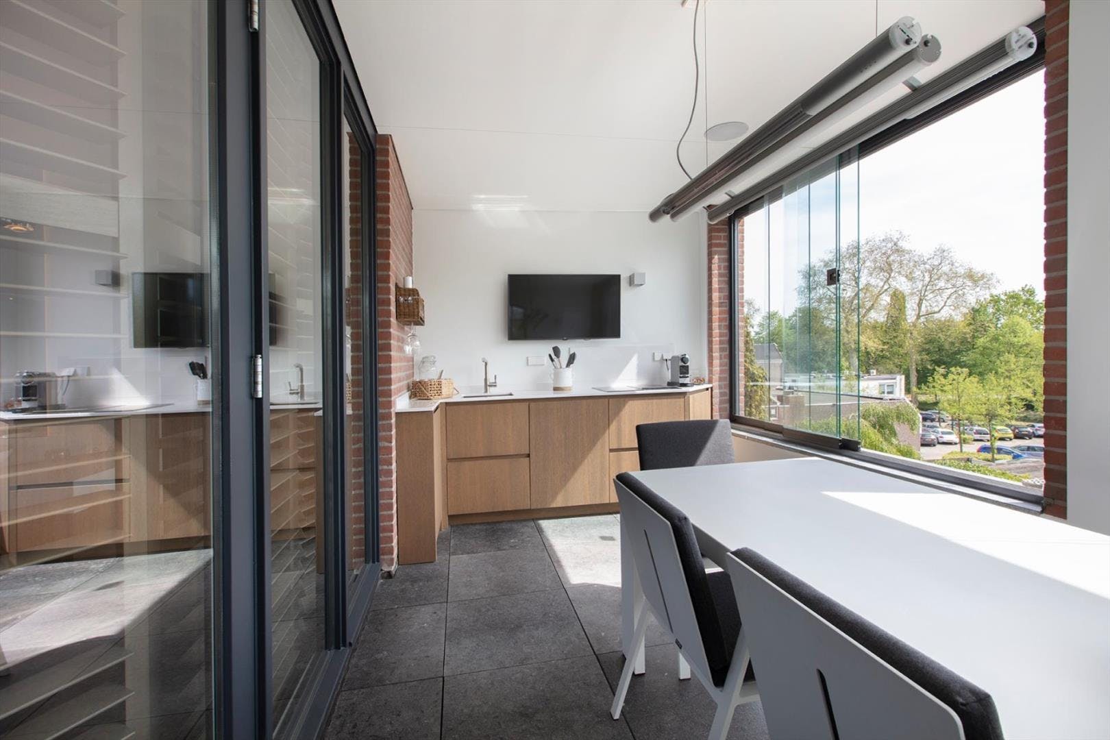 • de loggia cq het balkon biedt schitterend uitzicht op het Lindepark, De Voorste Stroom en tal van grote bomen en is voorzien van een buitenkeuken, tv, heaters, schuiframen en zonnescreens