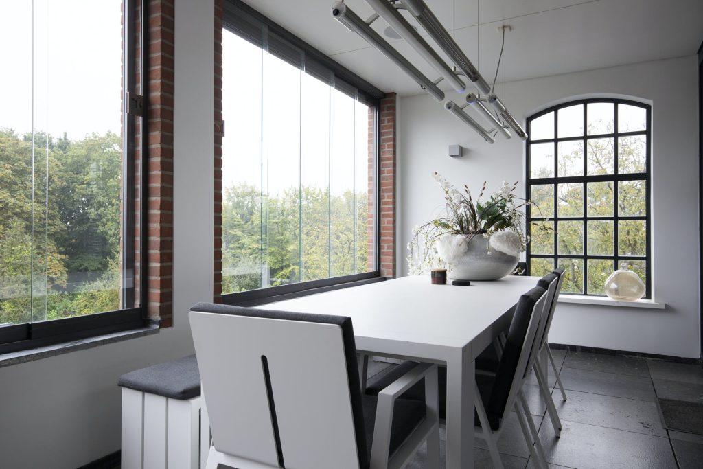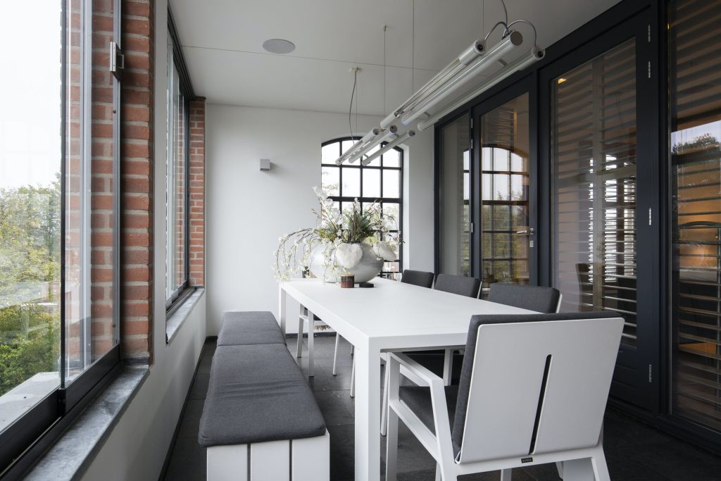 Sla de deuren aan de achterzijde open en u loopt zo naar buiten op de beschutte loggia waar u in de zomer, maar zeker ook in de winter met familie en vrienden kunt genieten.