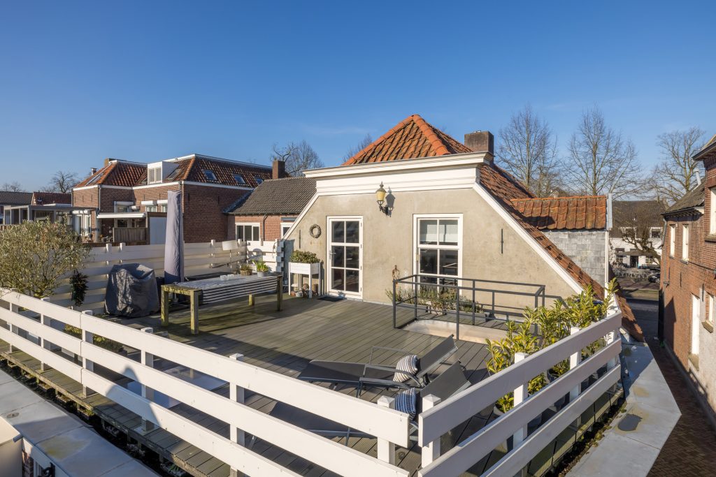 De bovenverdieping is al helemaal ingericht voor comfortabel dagelijks leven. U vindt hier een moderne keuken en een sfeervolle woonkamer die via grote raampartijen profiteert van veel natuurlijk licht. Direct grenzend aan deze leefruimte is er een royaal dakterras op het zuiden, waar u in alle privacy kunt genieten van de zon. Verder zijn er twee slaapkamers, een ruime badkamer en een extra logeerruimte op de tweede verdieping. Dit alles zorgt ervoor dat zowel senioren als jonge tweeverdieners zich direct thuis zullen voelen.
