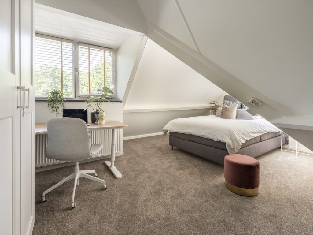 Op deze verdieping bevinden zich vier ruime slaapkamers, twee badkamers en een toilet, dat is ondergebracht in de kleinere badkamer. Daarnaast is er een overloop die toegang biedt tot de verschillende ruimtes. In de hoofdslaapkamer bevindt zich een maatwerk inbouwkast. Verder beschikt één van de slaapkamers – samen met de aangrenzende badkamer – over een dakkapel, wat zorgt voor extra licht en ruimte. De hoofdbadkamer is voorzien van een ligbad, inloopdouche en wastafel. De tweede badkamer heeft een douche en wastafel.
