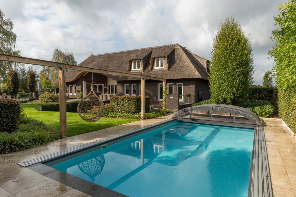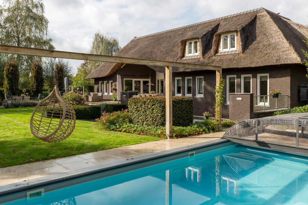 •Op een royaal en vrij gelegen perceel ligt deze prachtige met riet gedekte villa! De gehele woning is van alle comfort en luxe voorzien. Denkende hierbij aan een uitgebreid domoticasysteem, vloerverwarming, stofzuigsysteem, alarm-en brandmeld- installatie, separate kantoorruimte, riant souterrain, verwarmd zwembad met wellnessruimte en 4 slaapkamers waarvan de oudersuite met eigen badkamer op de begane grond.