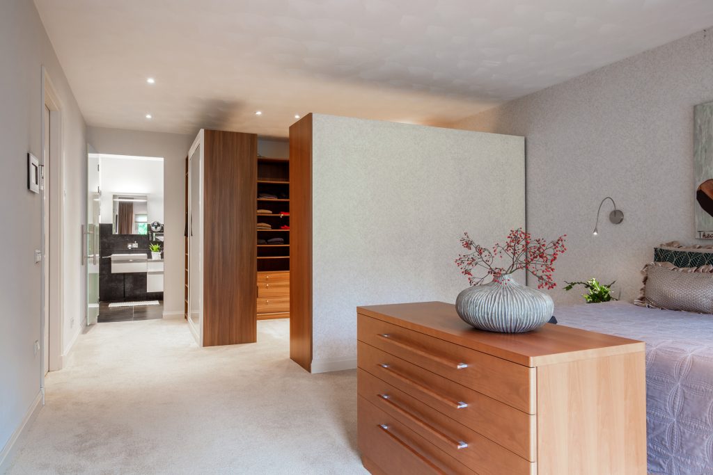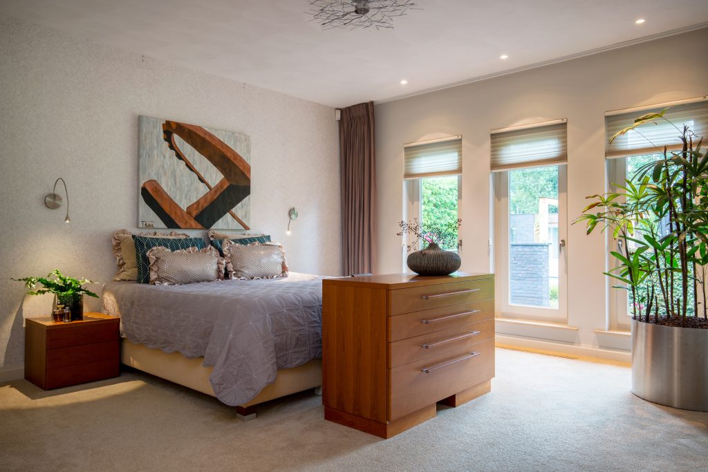 Riante slaapkamer (8 m x 4.5 m) voorzien van alle comfort door de combinatie met een inloopkast en een eigen badkamer. De kamer is voorzien van inbouwspots, vloerbedekking en 3 ramen met uitzicht op de achtertuin. Tevens bieden de ramen een prettige en natuurlijke lichtinval.