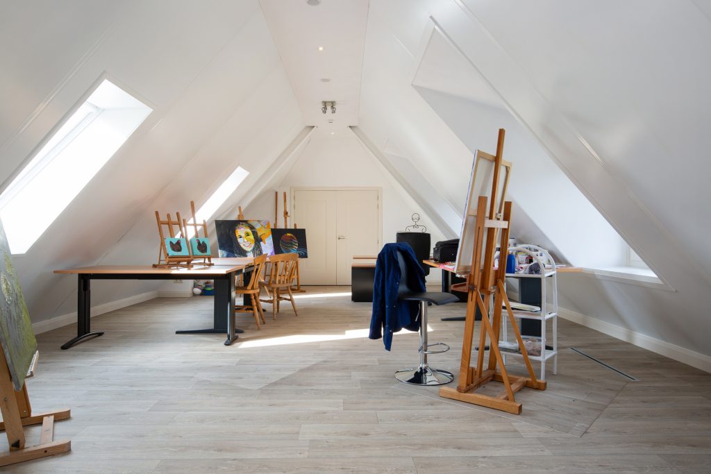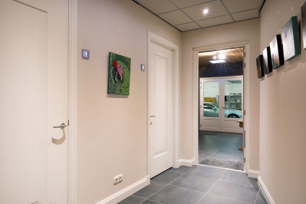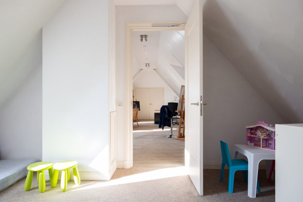 Er is toegang tot de 3 slaapkamers, het toilet, de badkamer en via een tussenruimte de atelierruimte.